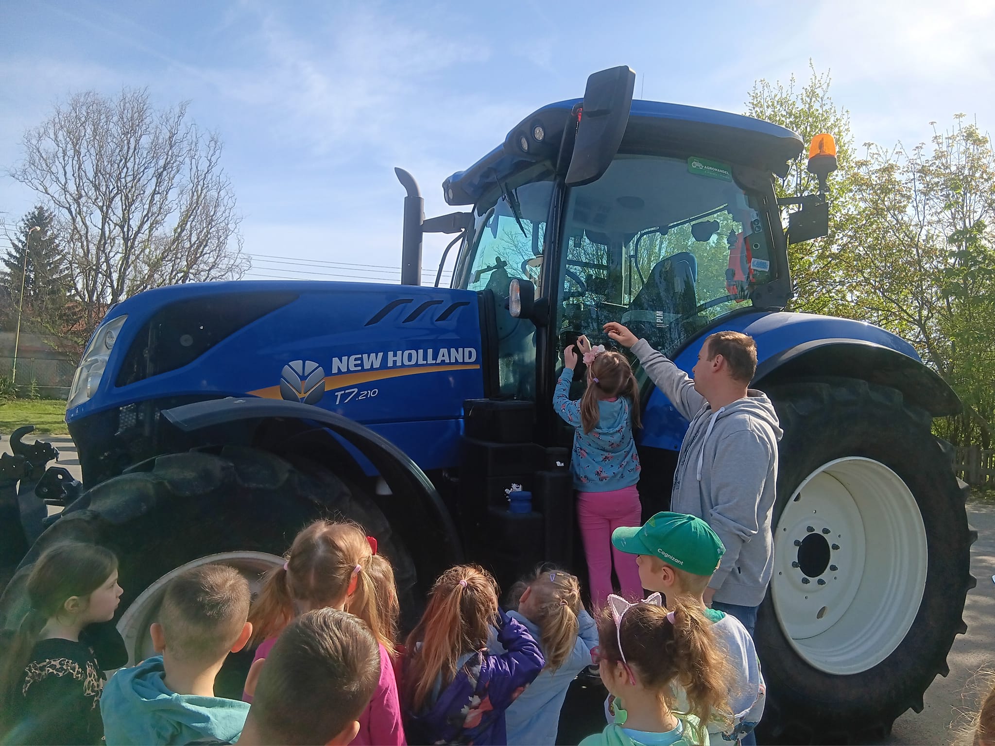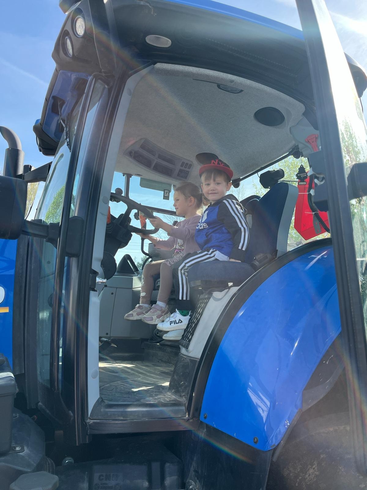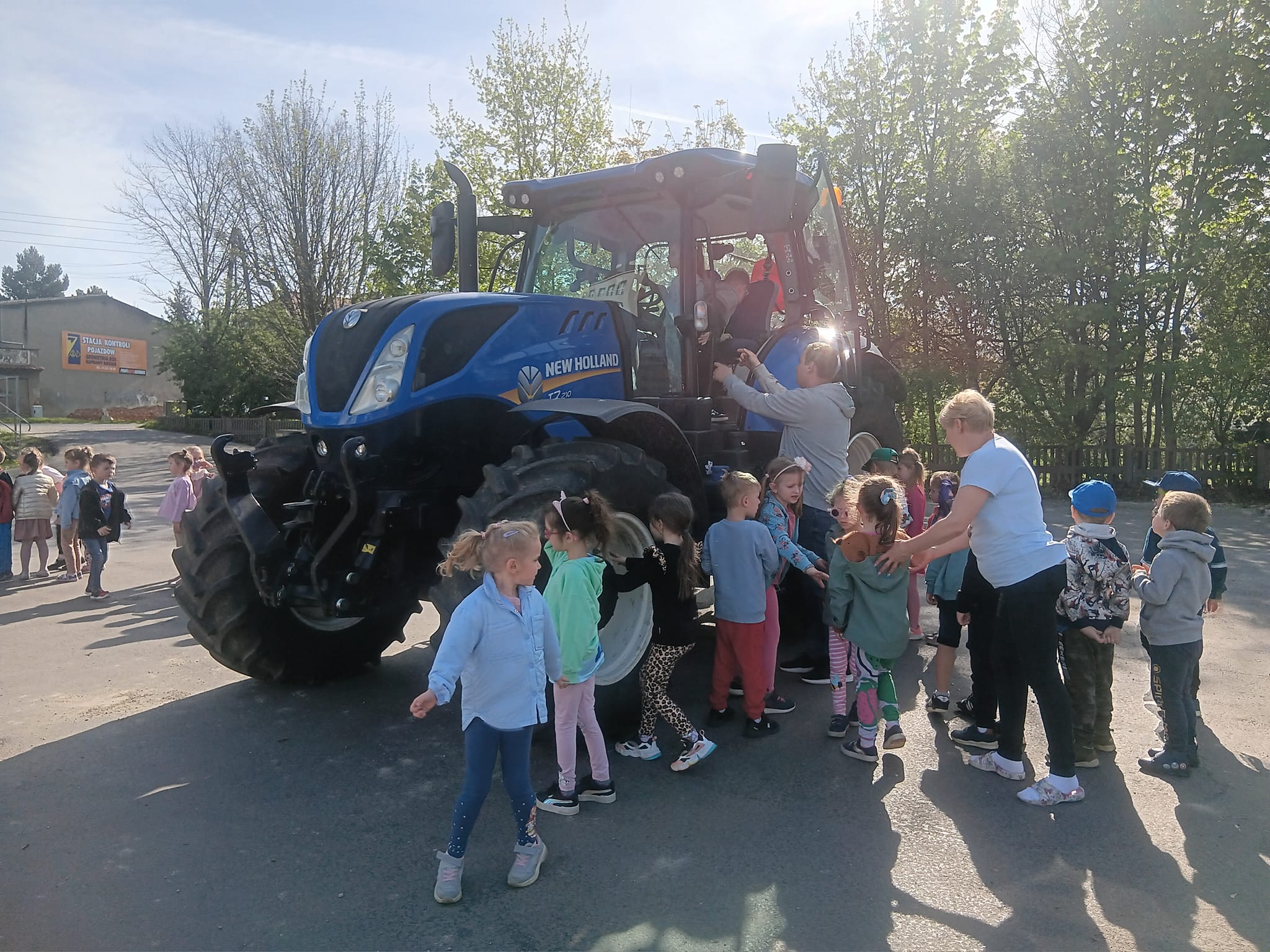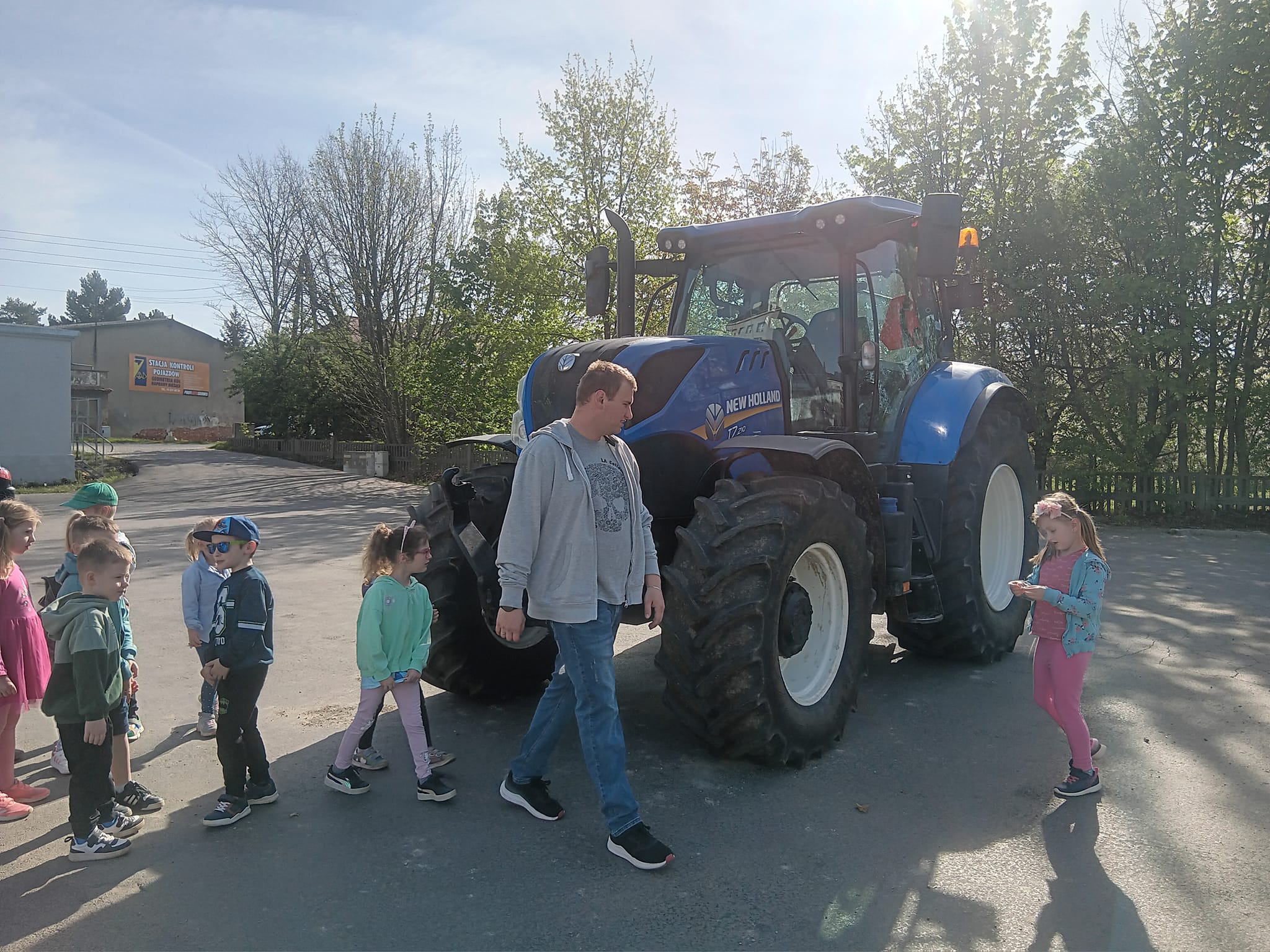 Dzięki życzliwości taty Amelki i Wojtusia, który przyjechał do przedszkola, by opowiedzieć o swojej pracy dzieci miały okazję zobaczyć z bliska ciągnik oraz wejść do środka.