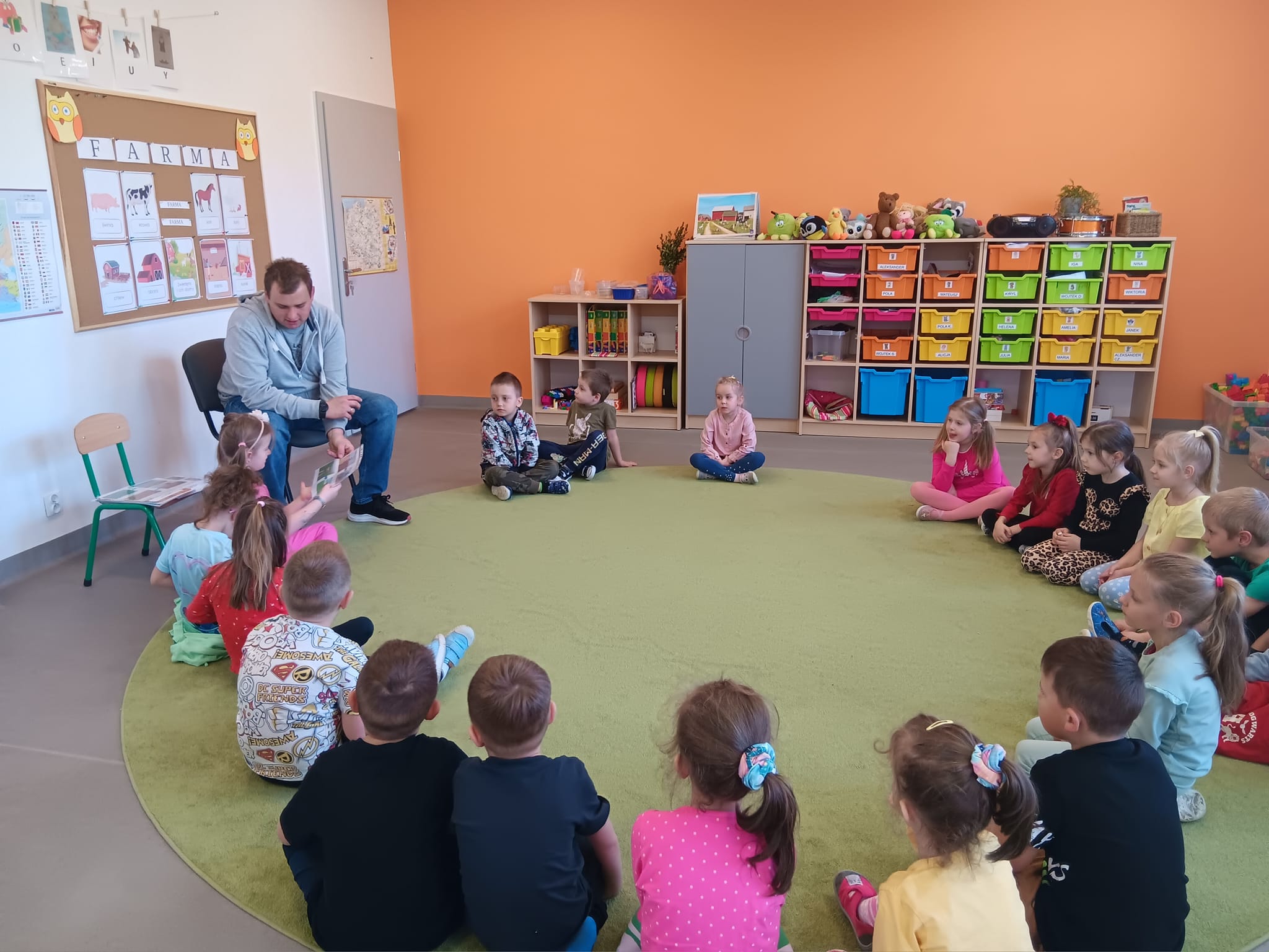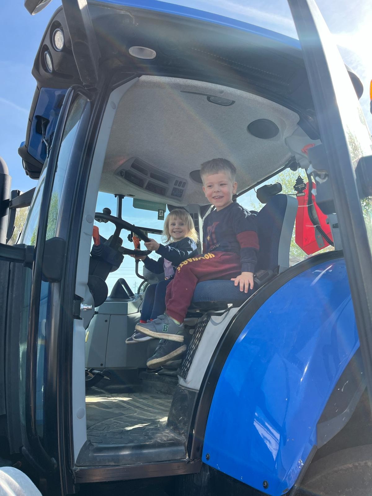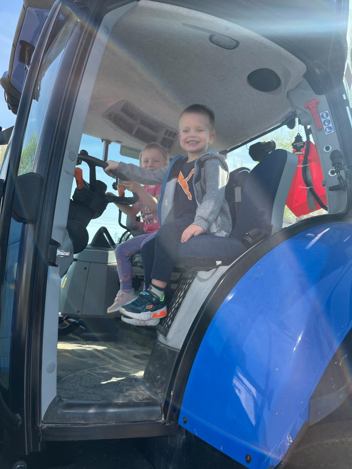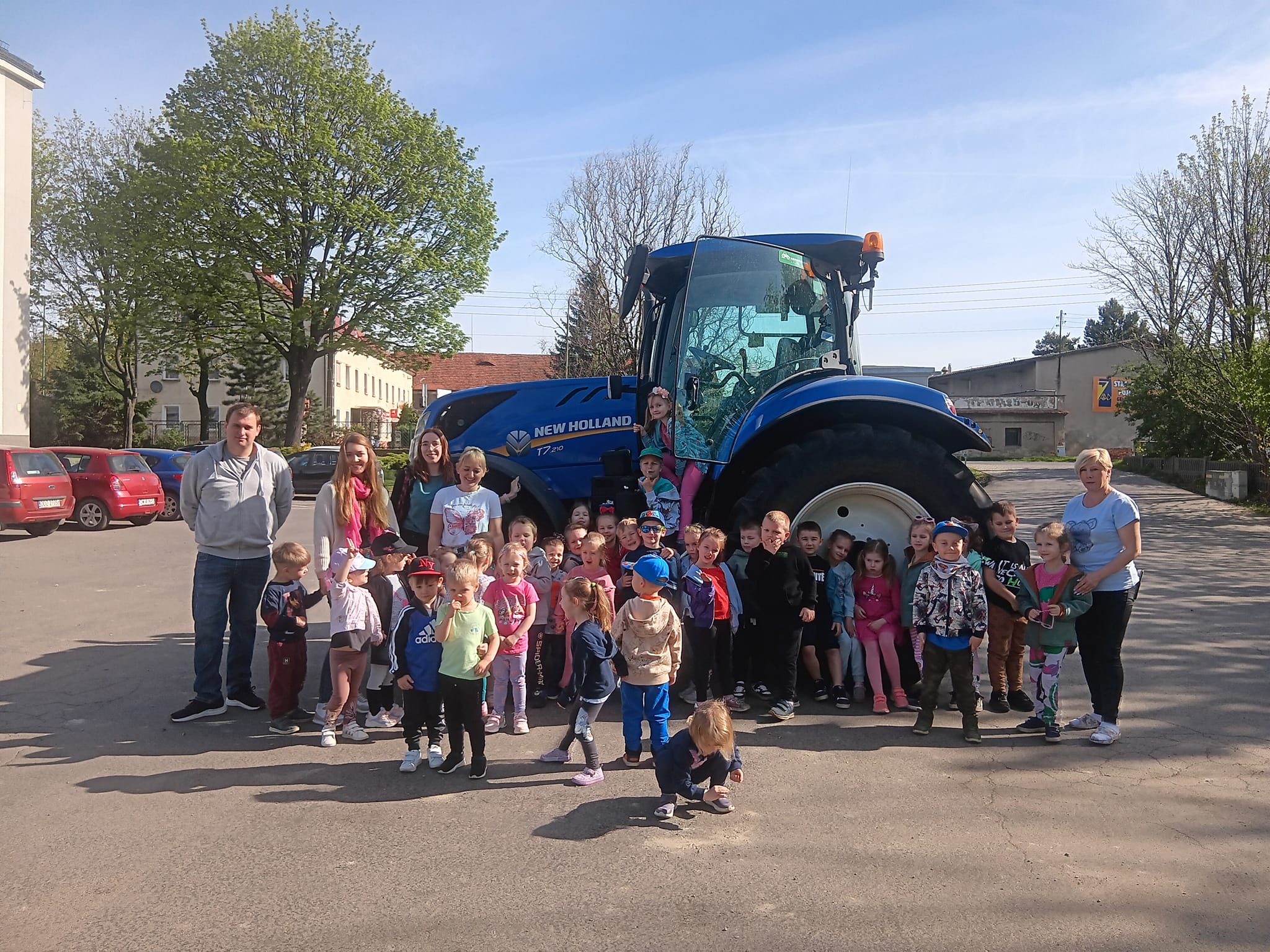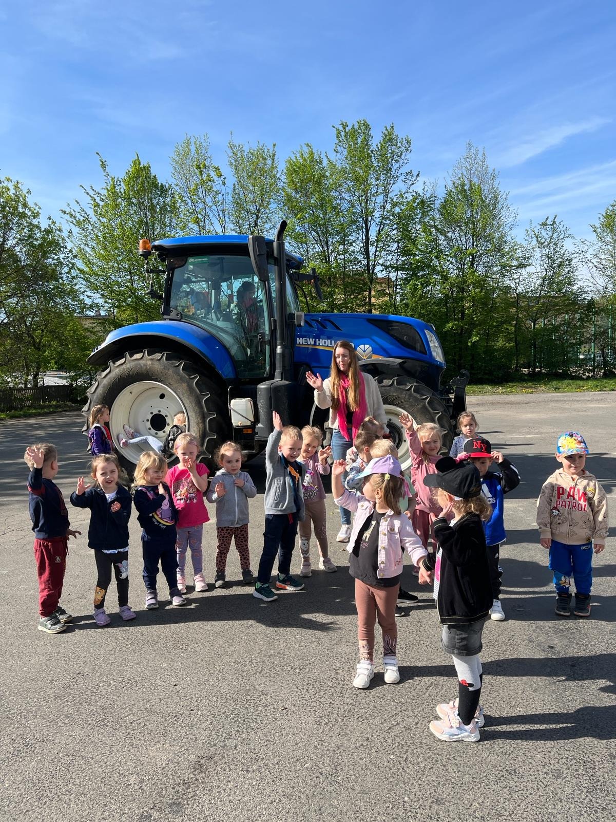 Dzięki życzliwości taty Amelki i Wojtusia, który przyjechał do przedszkola, by opowiedzieć o swojej pracy dzieci miały okazję zobaczyć z bliska ciągnik oraz wejść do środka.