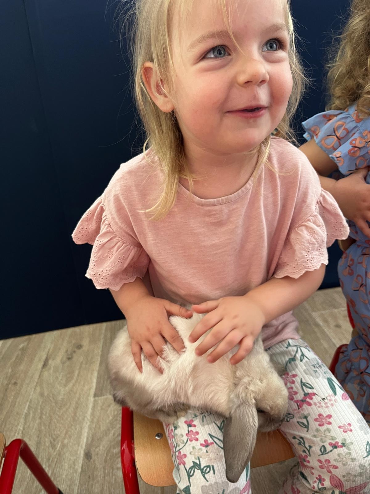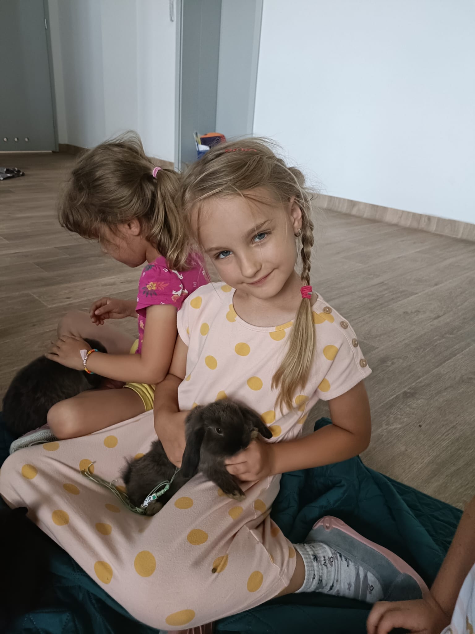 Przy okazji miały okazję nauczyć się jak zachowywać się przy tak małych zwierzątkach i przećwiczyć czekanie na swoją kolej.