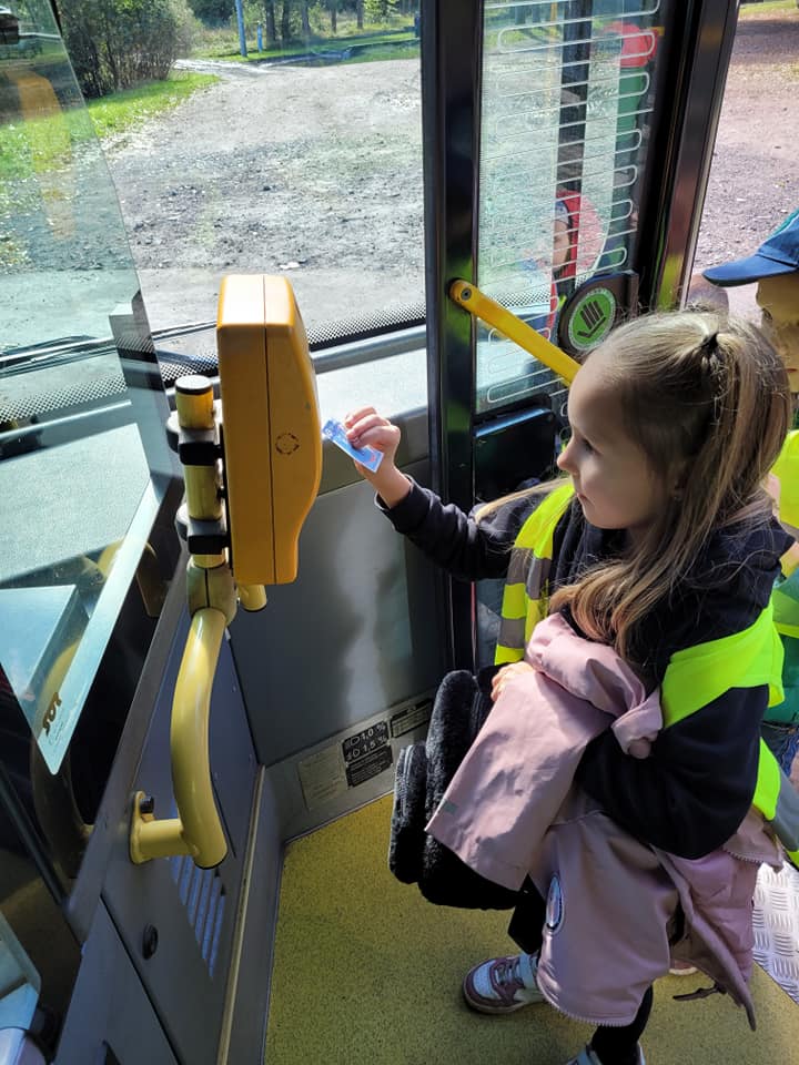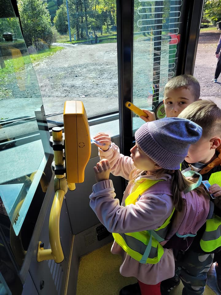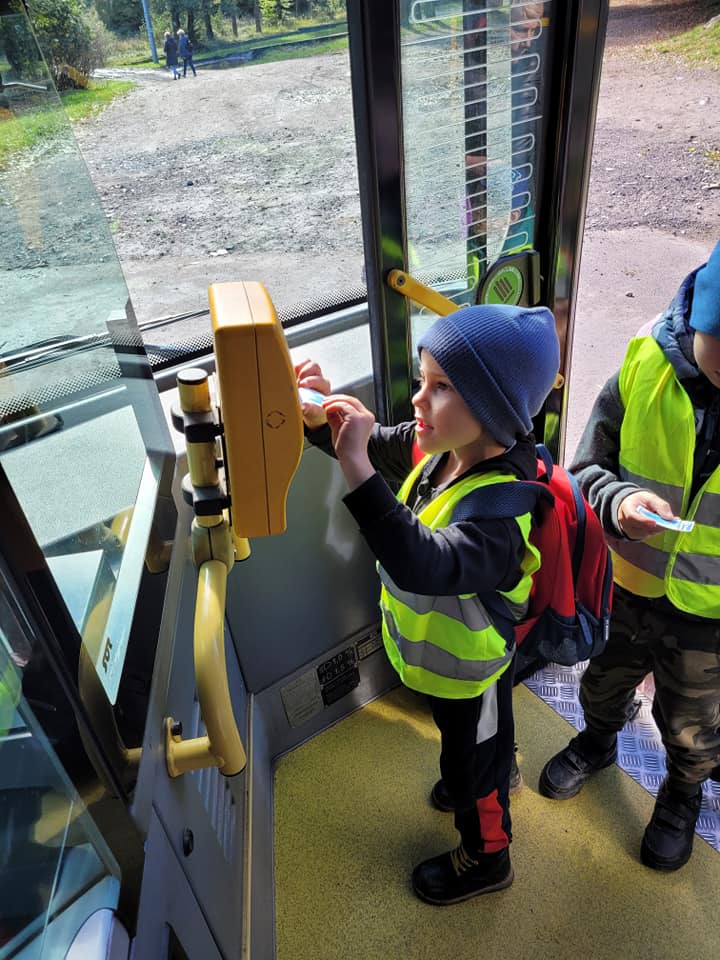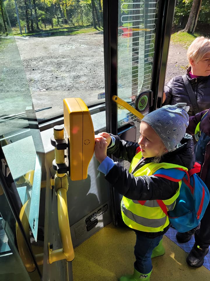 Miały okazję potrenować umiejętność poruszania się w ruchu drogowym, przypomniały sobie zasady bezpieczeństwa. Mogły samodzielnie skasować bilety w autobusie oraz odszukać w lesie różnych darów jesieni :)