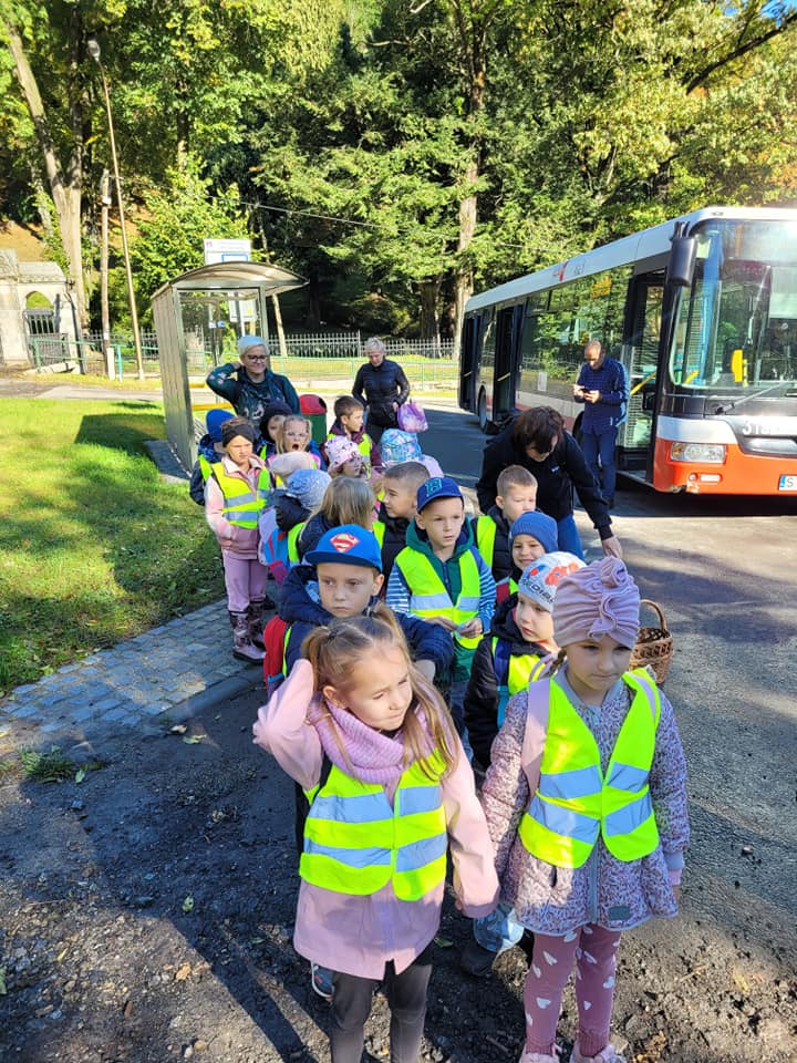 Dzisiaj dzieci z grupy Sówek wyruszyły w podróż miejskim autobusem do Leśnego Dworka w Bielawie.