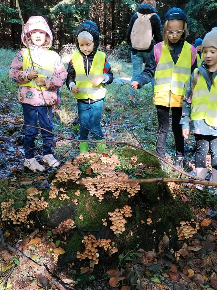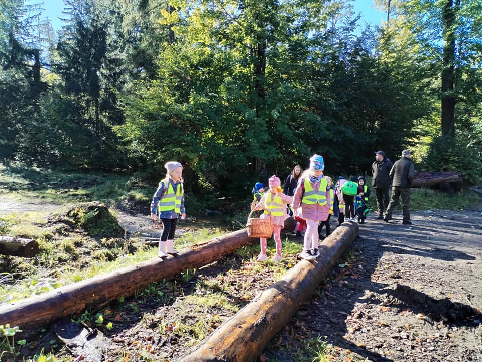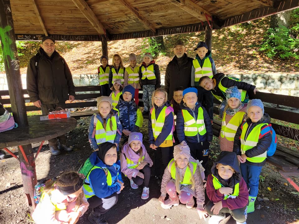 Podczas wycieczki po lesie towarzyszyli nam Panowie leśniczy, którzy op0wiedzieli dzieciom ciekawostki dotyczące lasu oraz przybliżyli nam zawód leśniczego :)