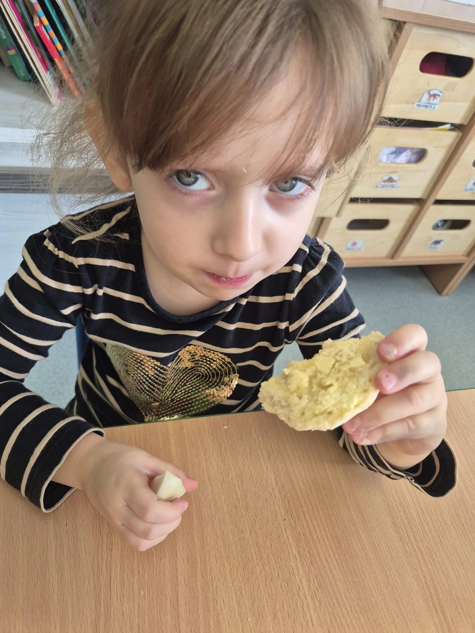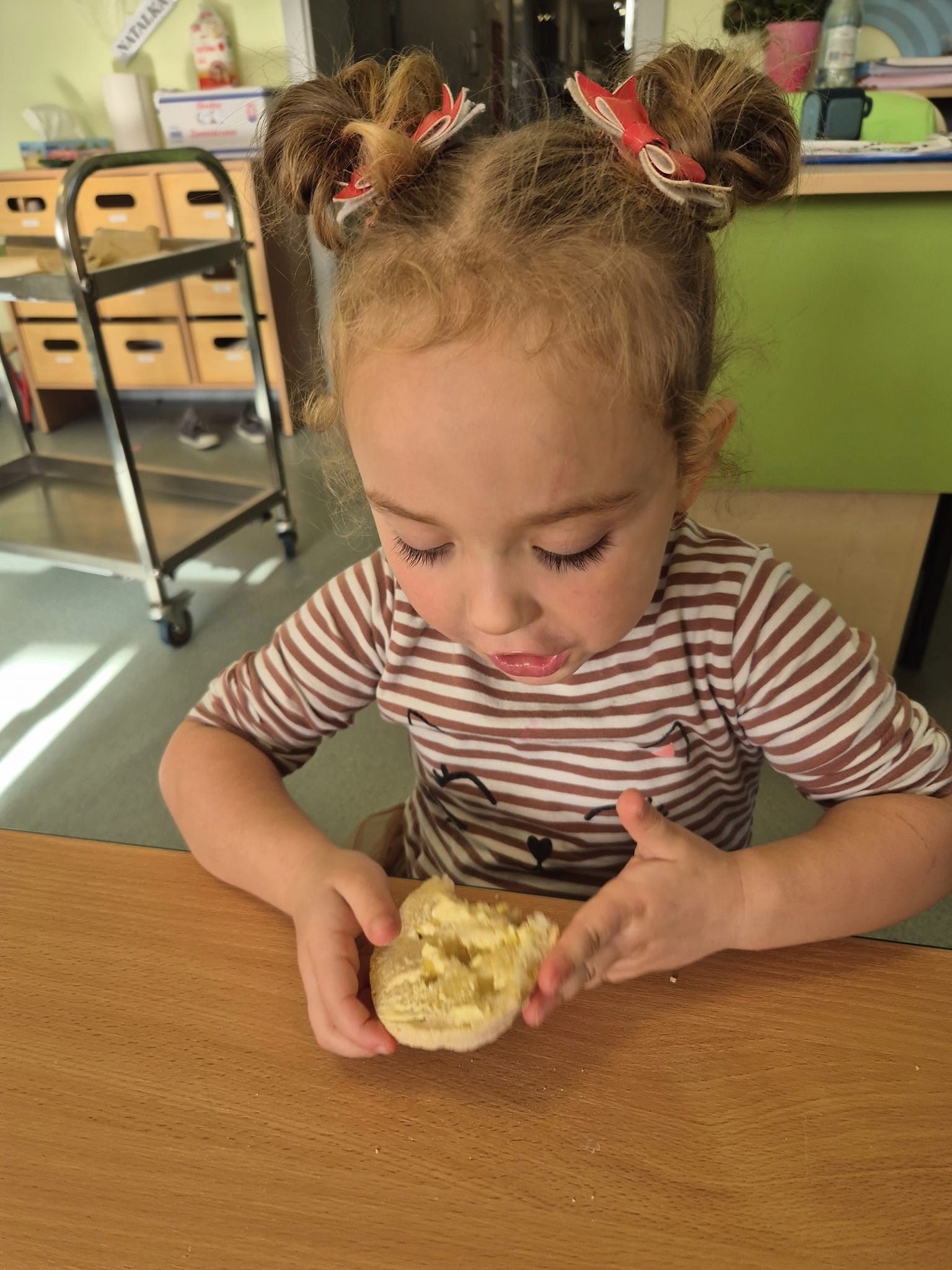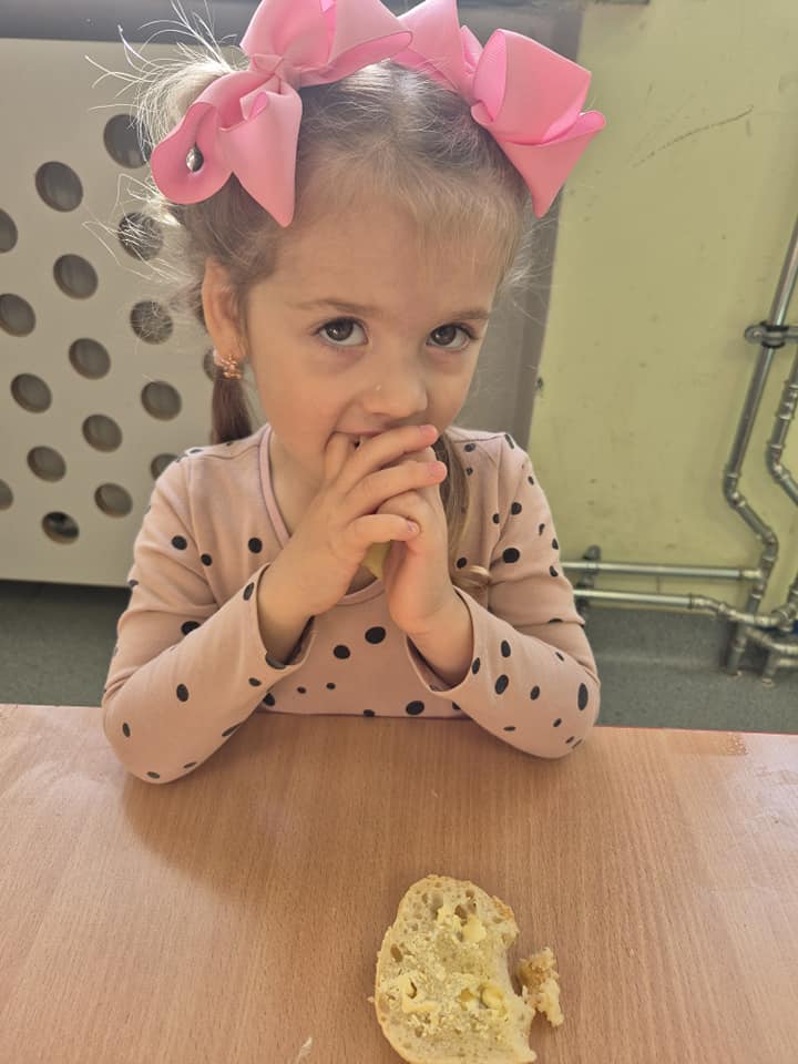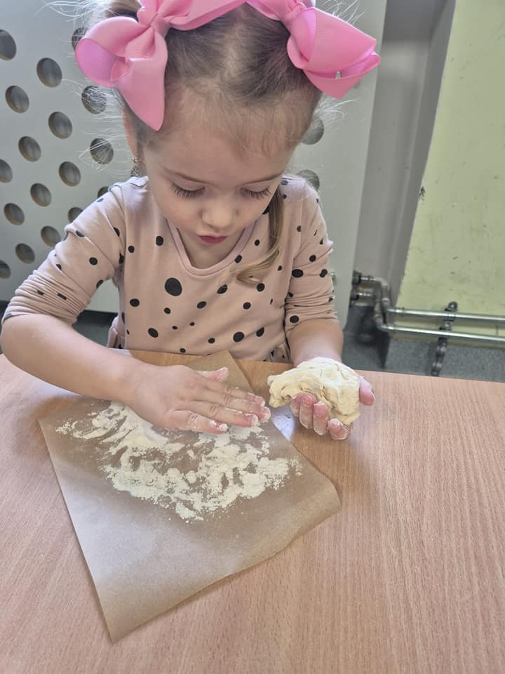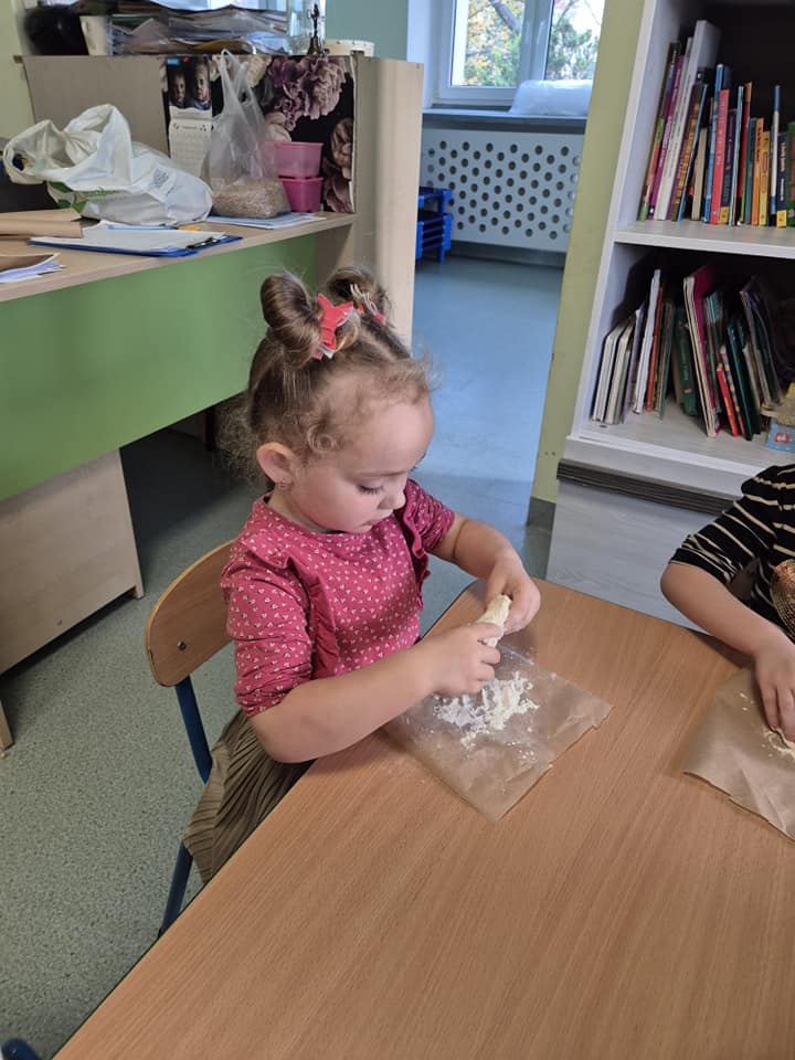 Następnie wykonały swoje pierwsze bułeczki w przedszkolu.