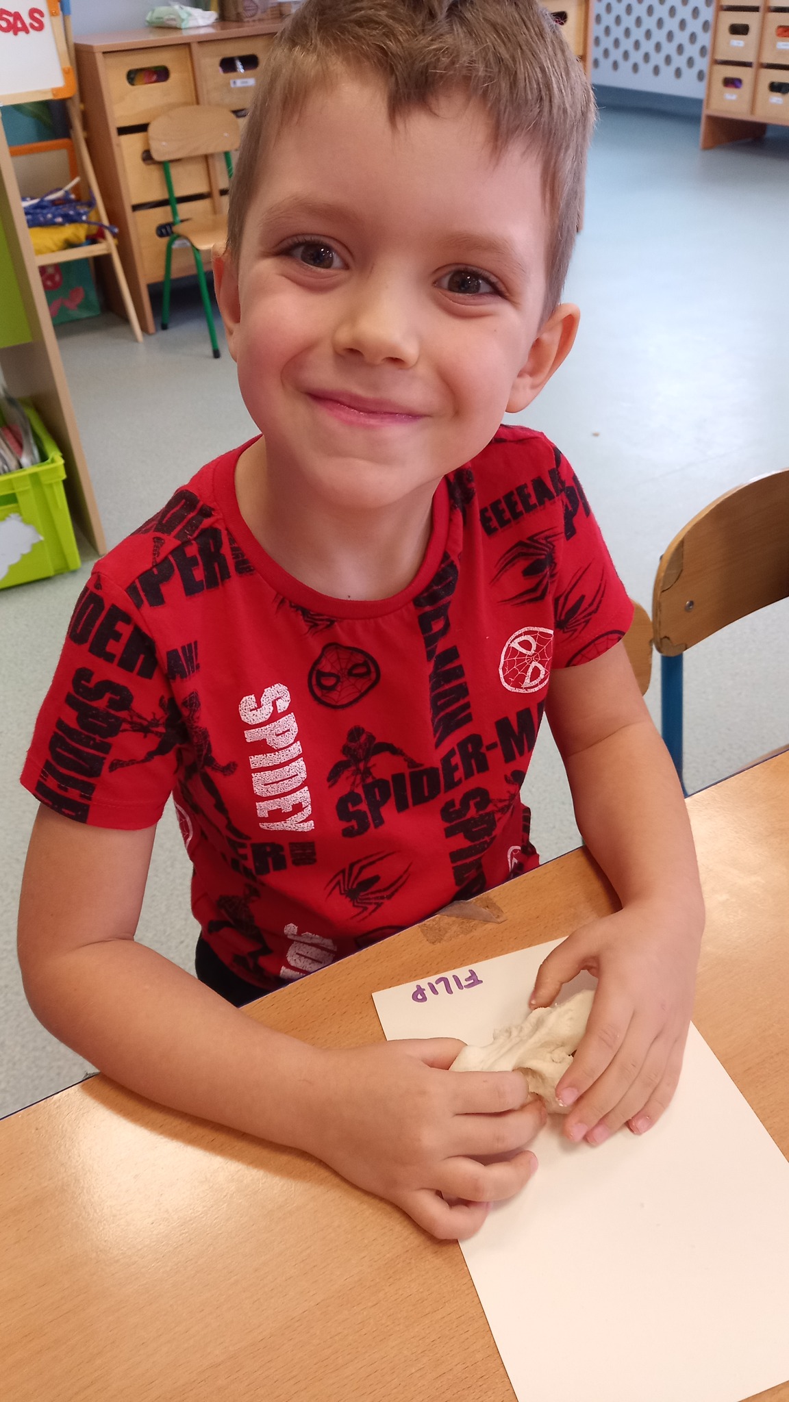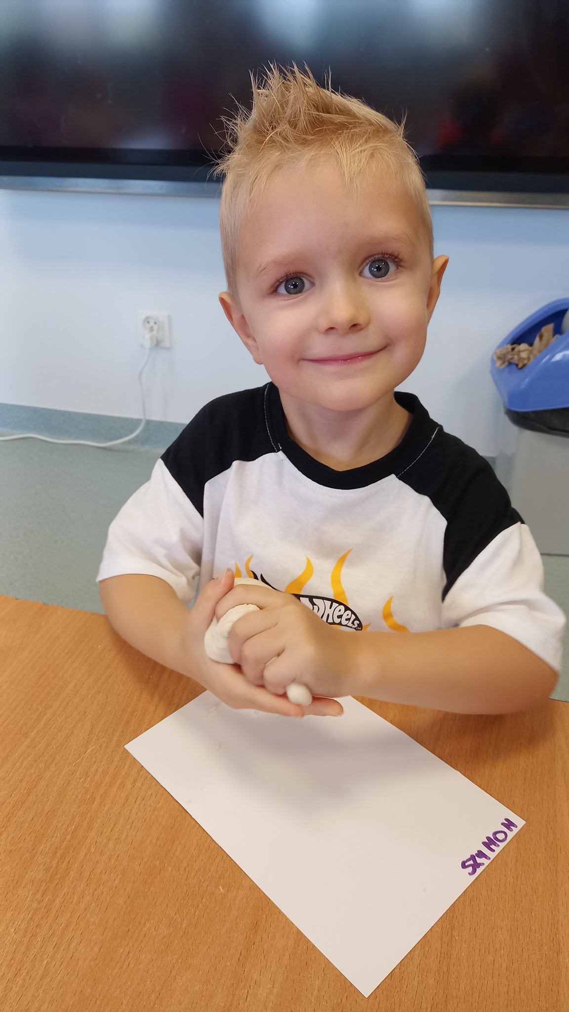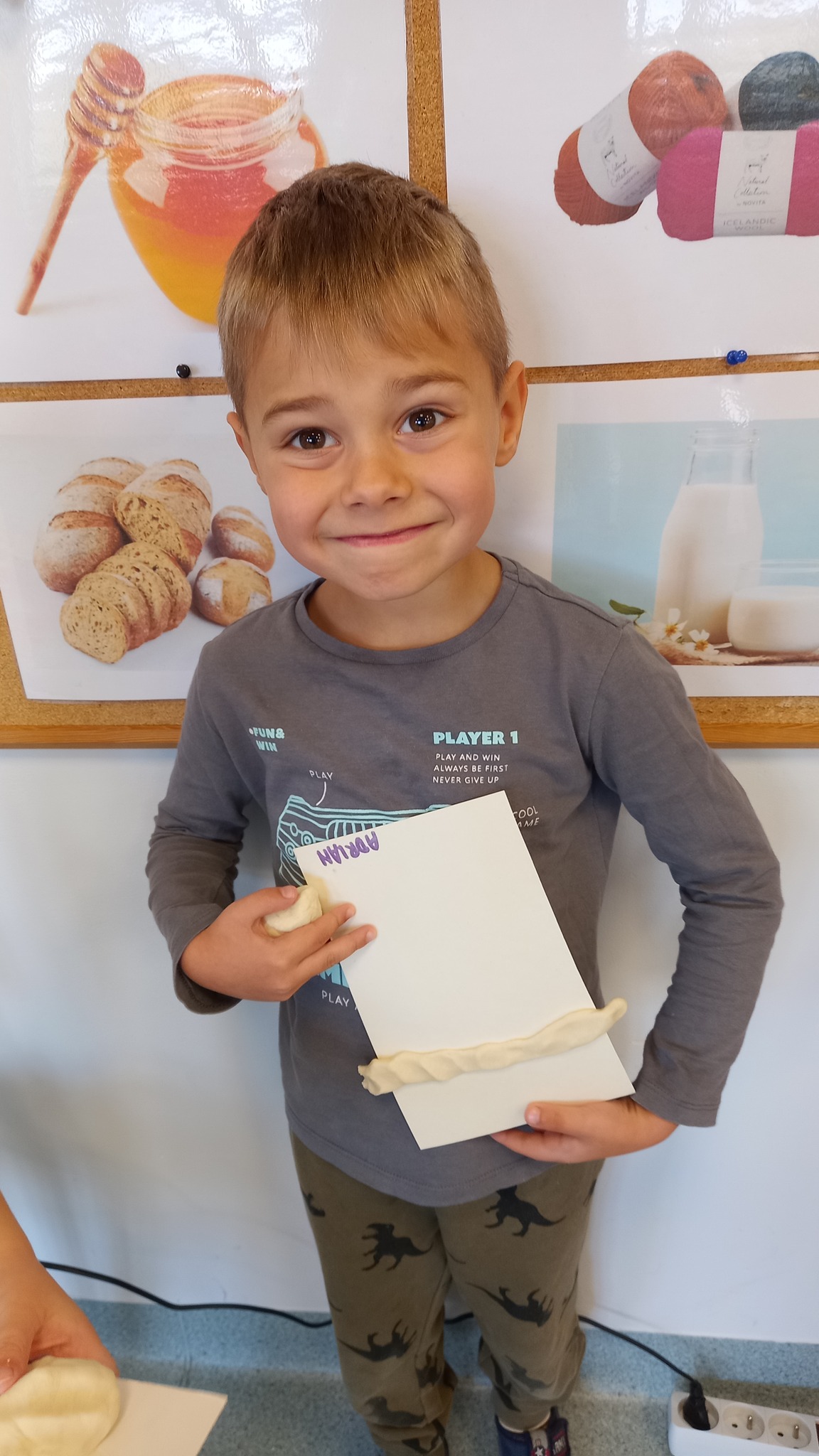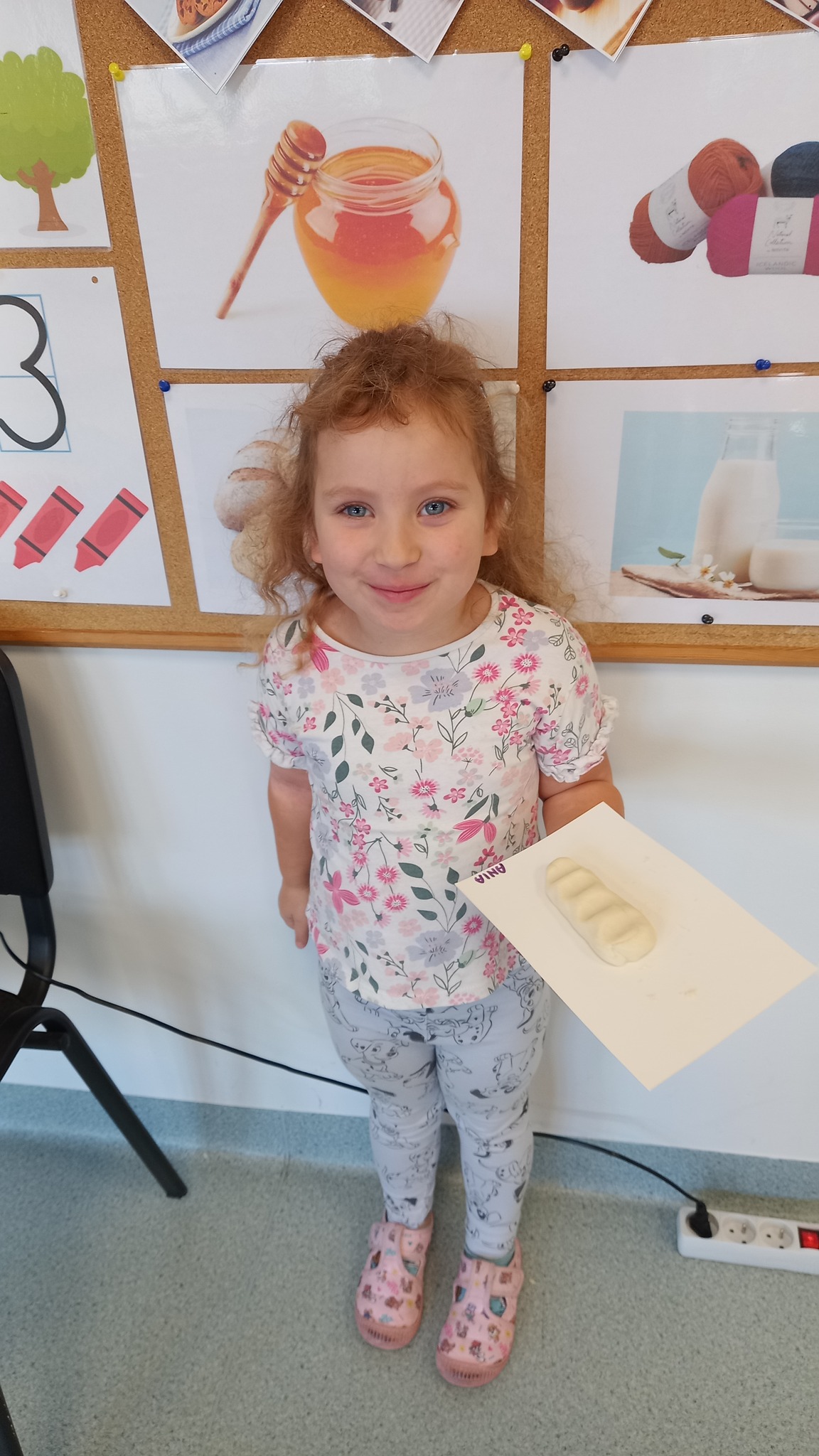 Zabawy sensoryczne z wykorzystaniem masy solnej. Dziś nasze Delfinki wcieliły się w rolę piekarzy i uformowały z masy bułeczki i rogaliki.