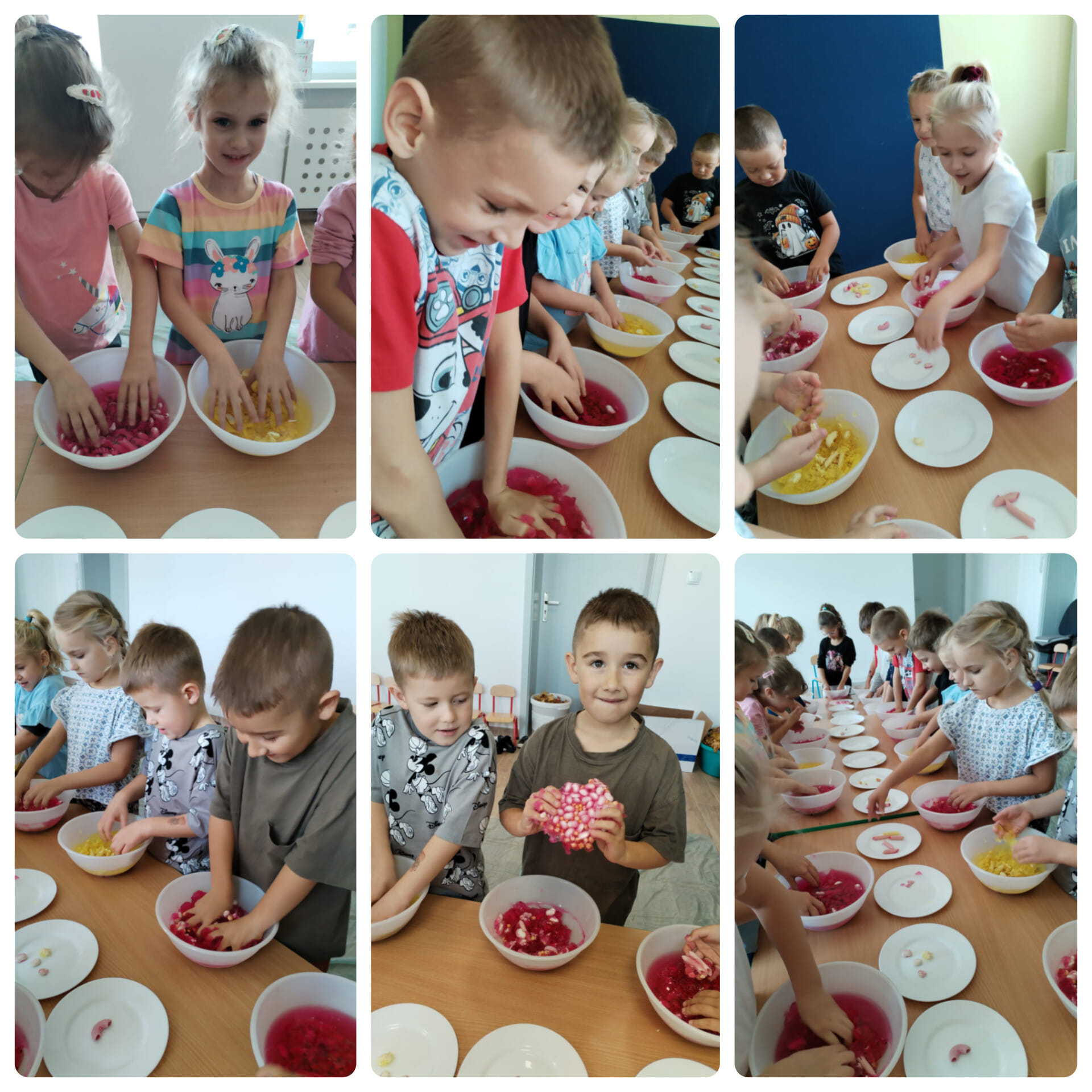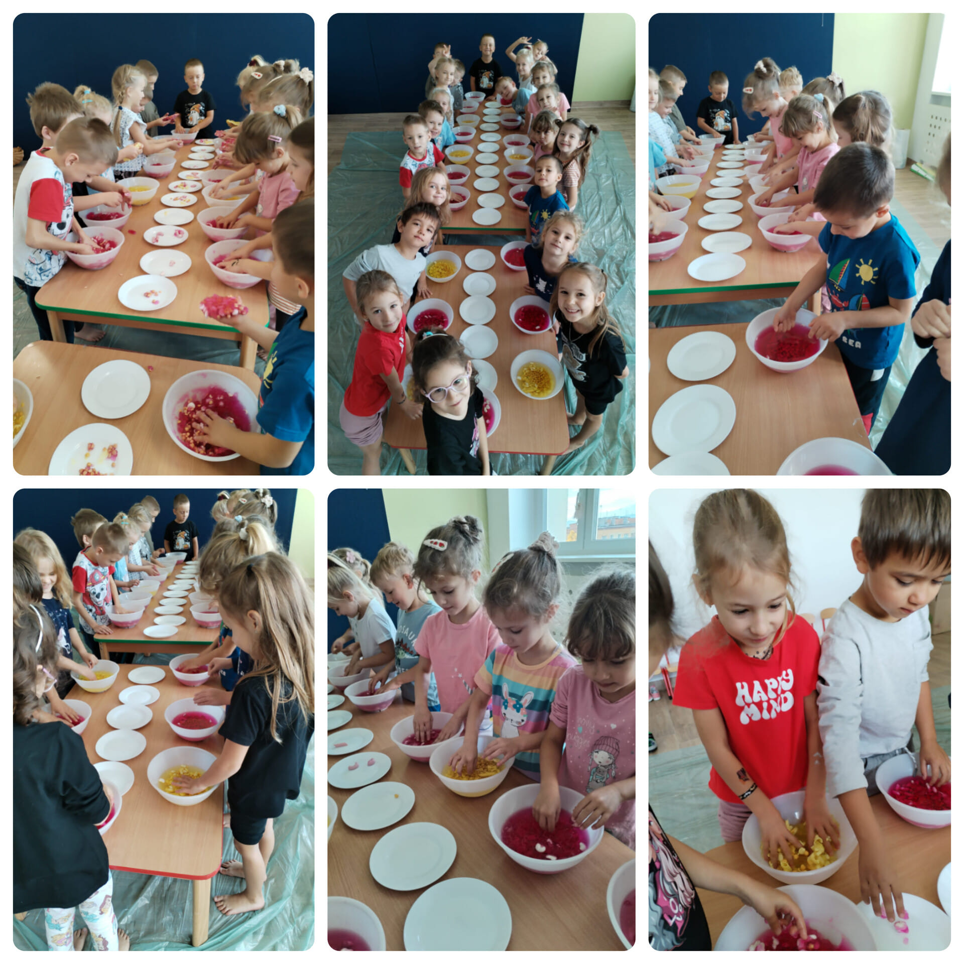 Zabawy sensoryczne w grupie Sówek. Przedszkolaki miały okazję wczoraj pobawić się w..... GALARETCE.