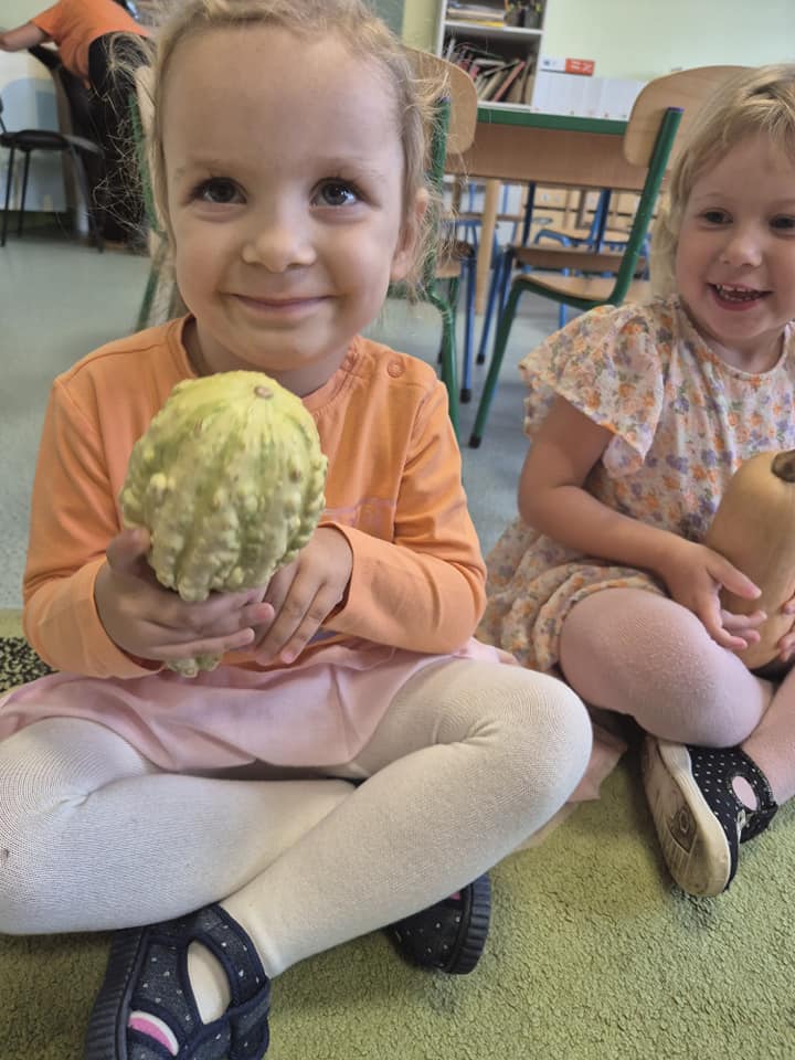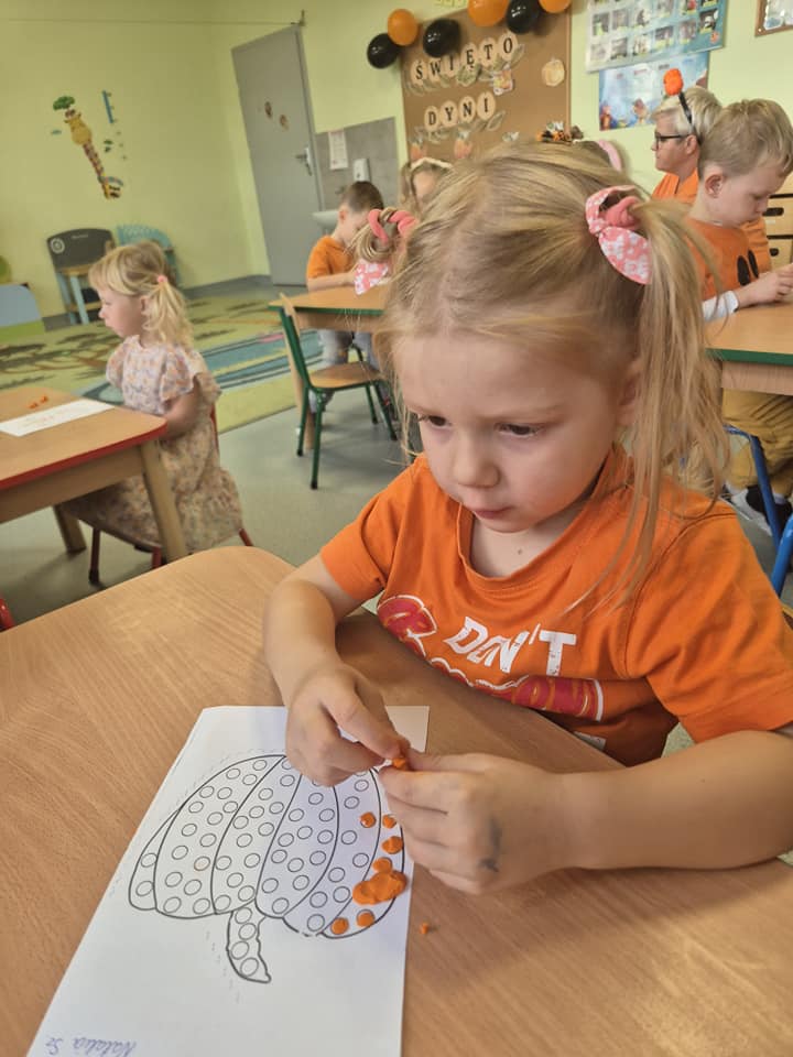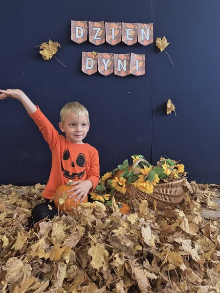 Dzisiaj dzieci z gr. Lwiątka świętowały Dzień Dyni -poznały budowę tego warzywa oraz sposób uprawy. Odbyła się również sesja fotograficzna w jesiennym stylu.