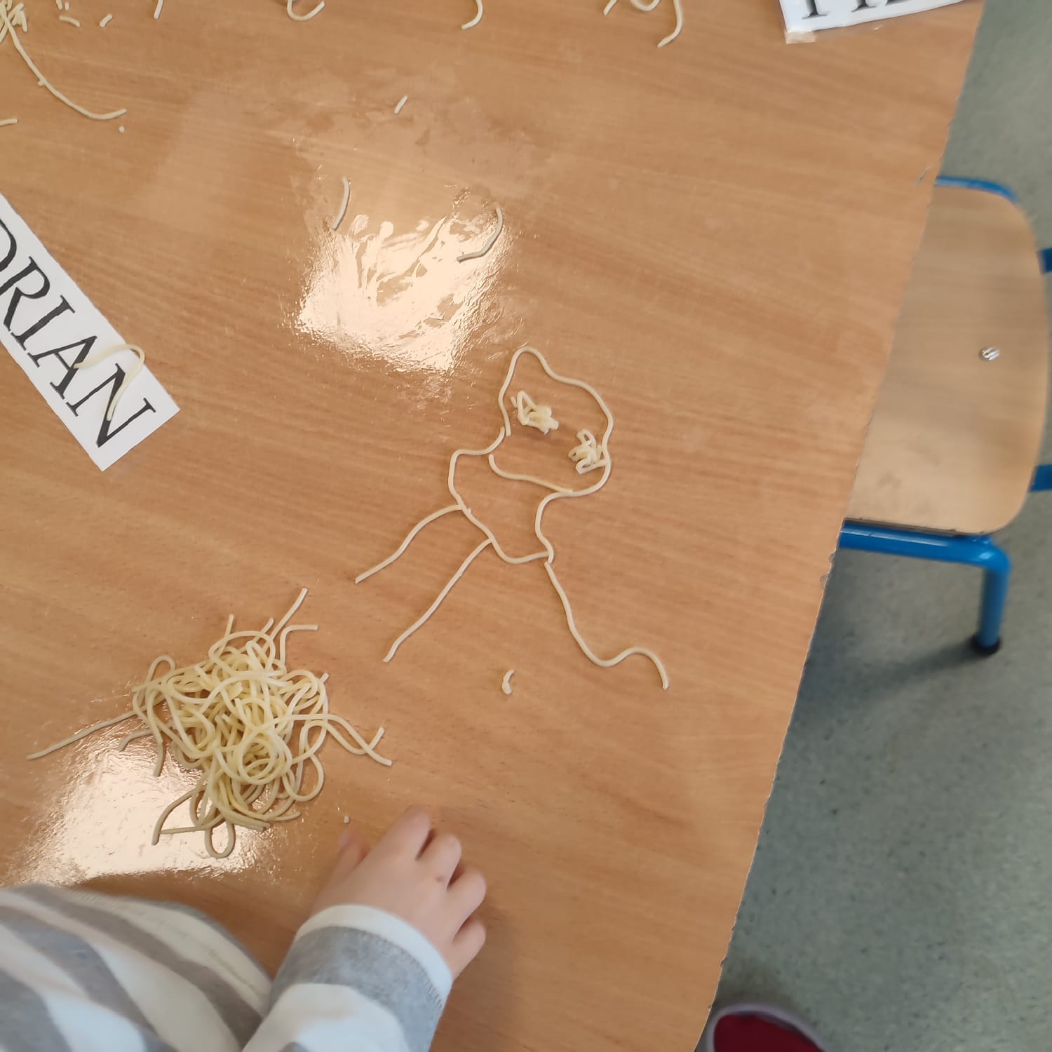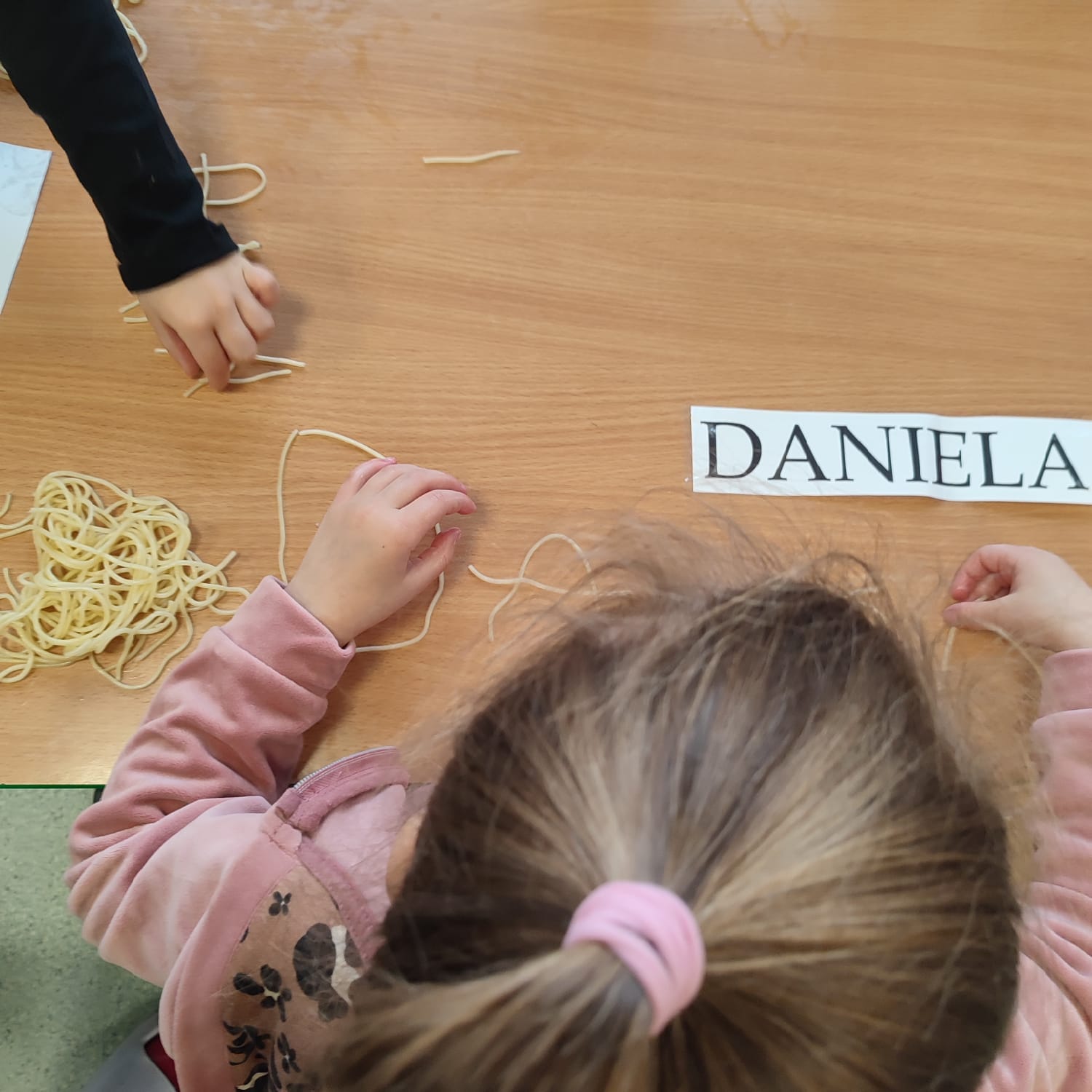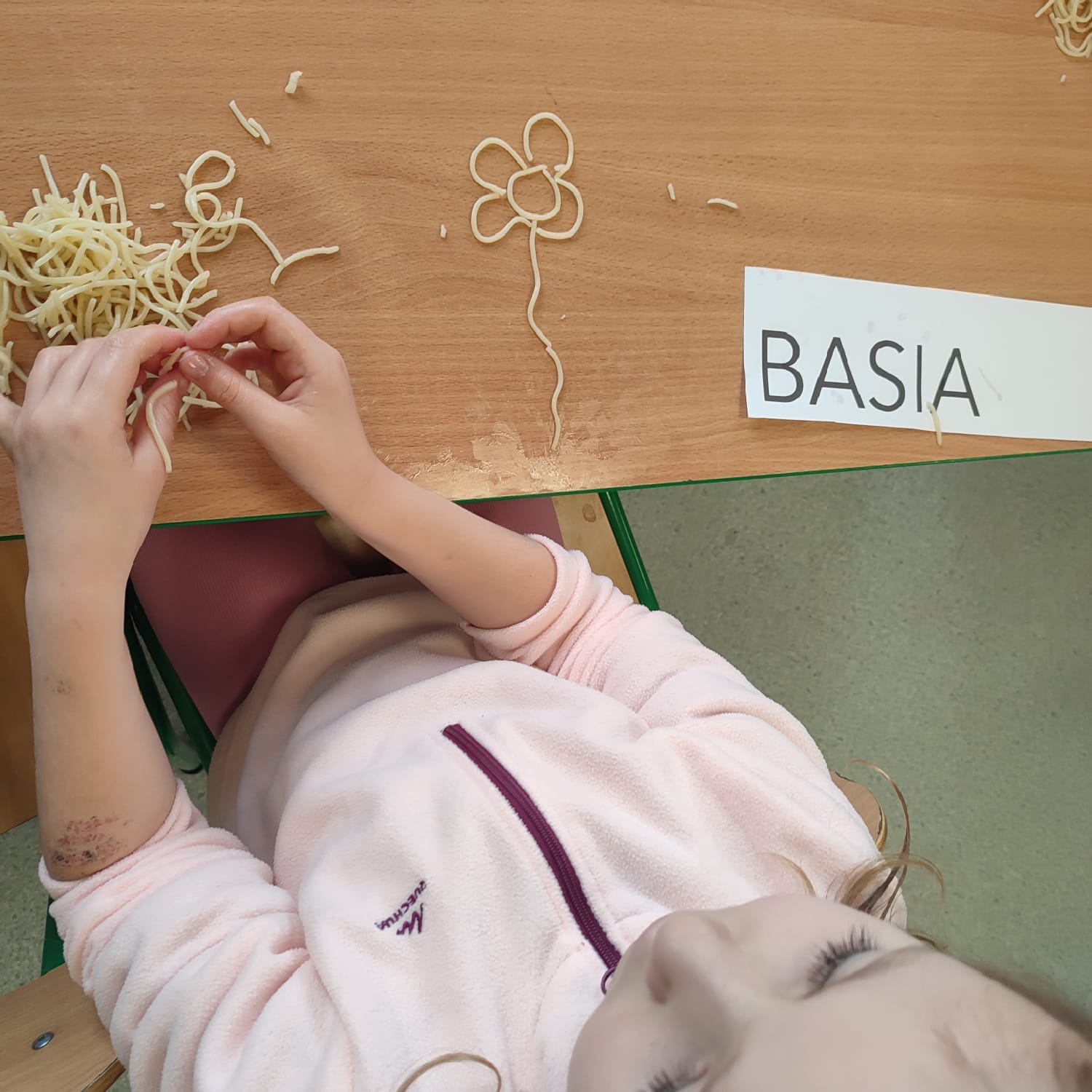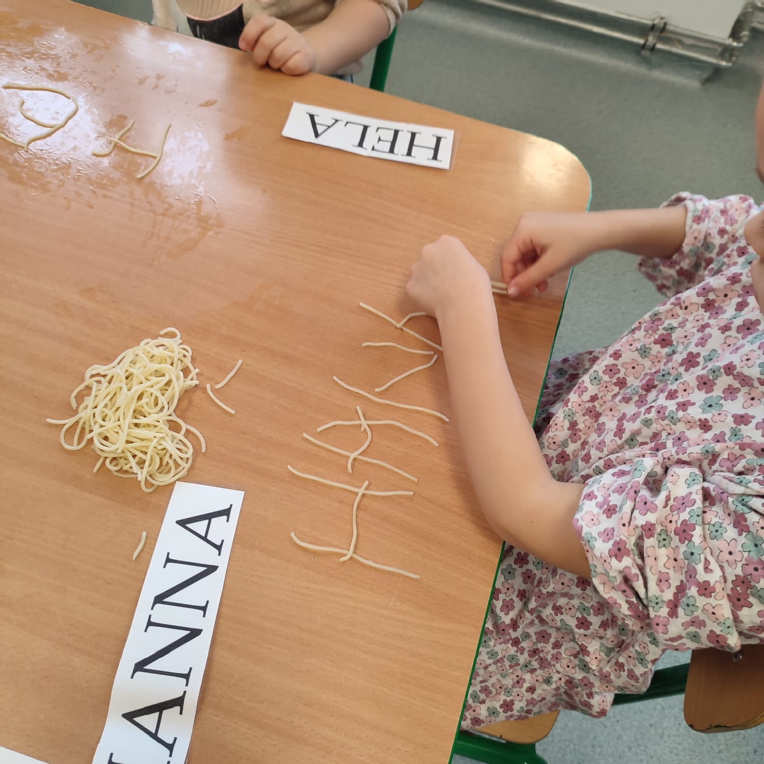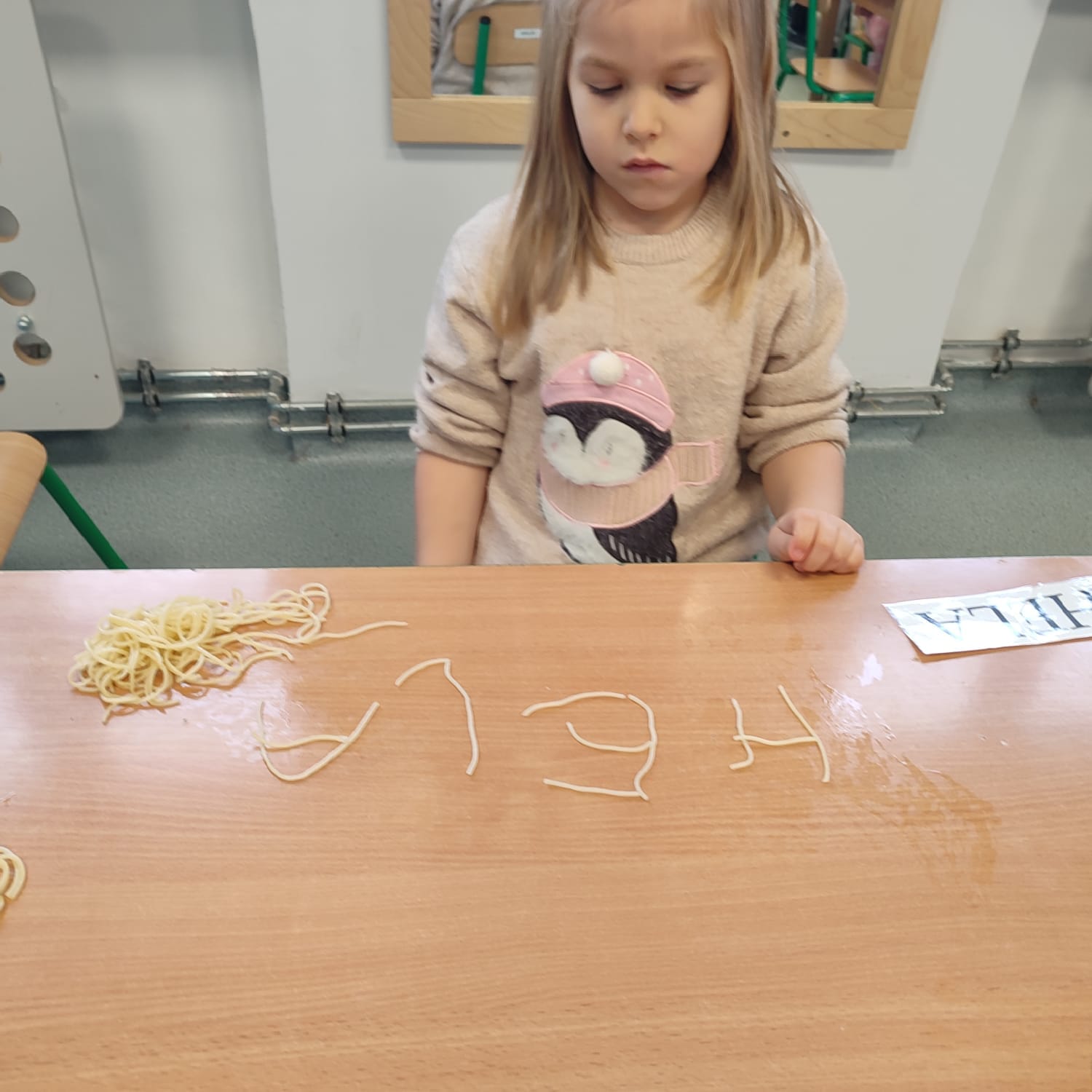 Zajęcia sensoryczne w grupie "Delfinki" z wykorzystaniem makaronu. Nasze przedszkolaki ćwiczyły pisanie liter poprzez zabawę. Dzieci stworzyły również ciekawe makaronowe stworki.