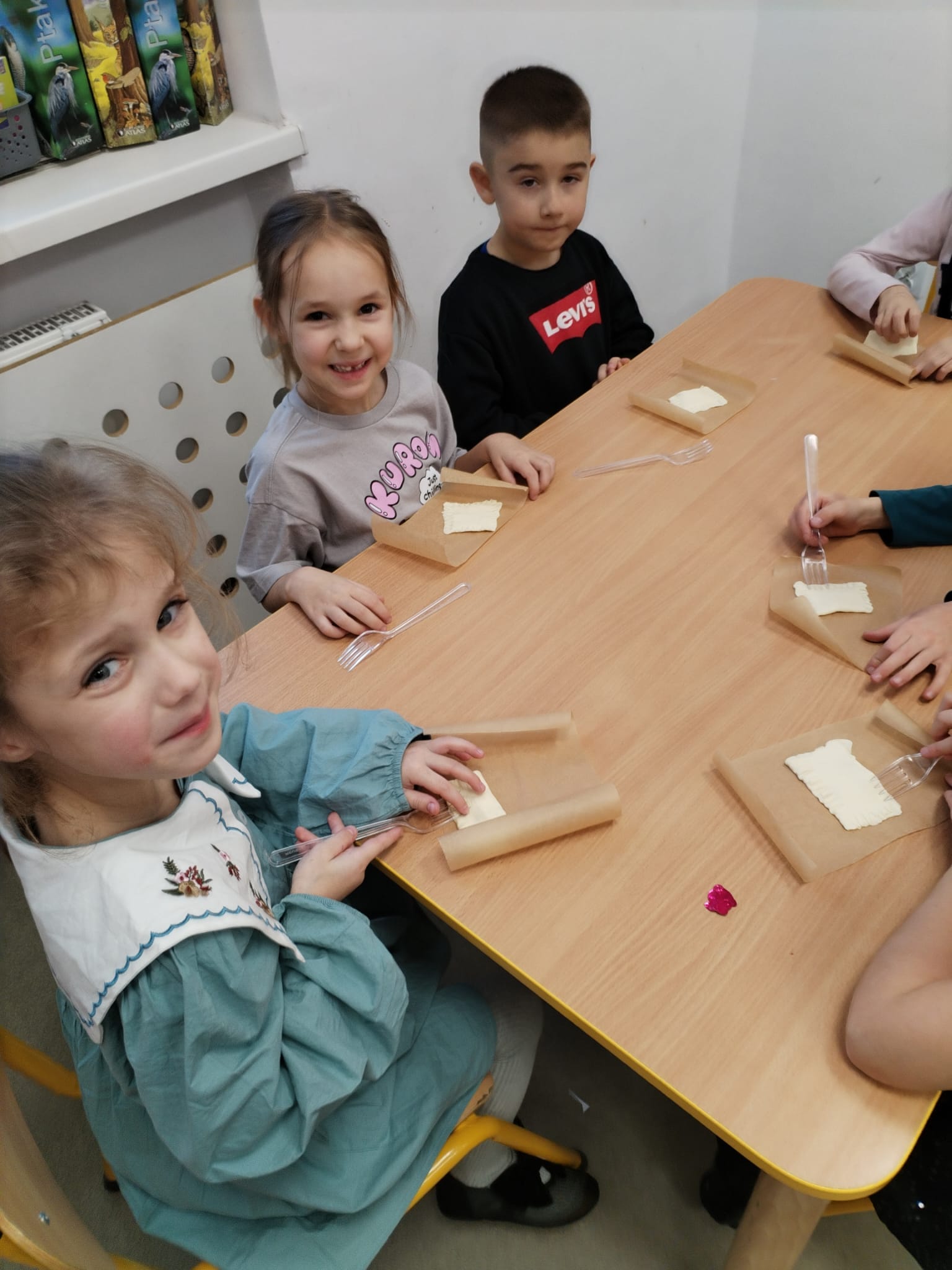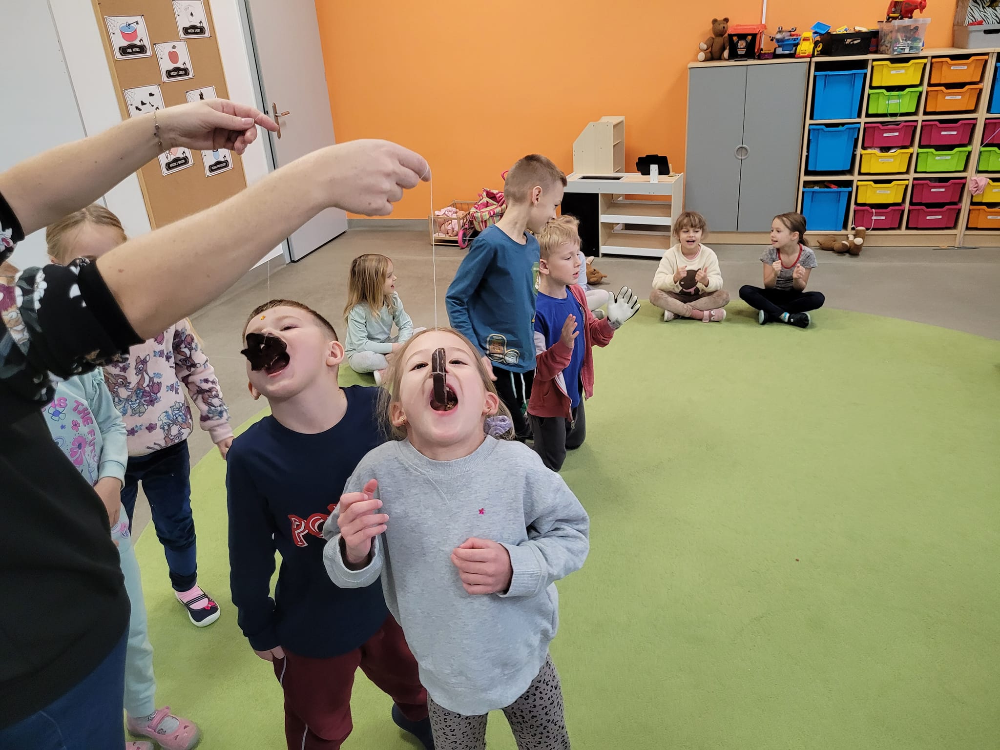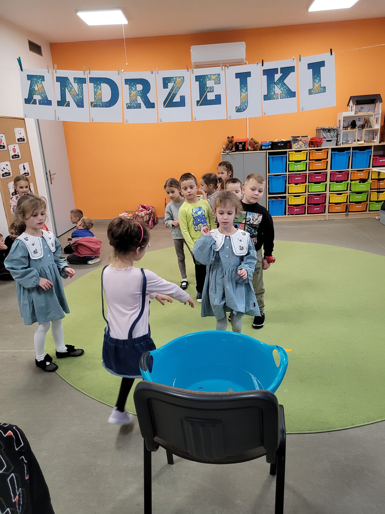 W piątek w naszej grupie świętowaliśmy Andrzejki. Były wróżby, zabawy i dużo śmiechu . Każdy samodzielnie przygotował ciasteczko z wróżbą, w którym krył się atrybut jakiegoś zawodu. Dzieci próbowały także zjeść piernika na sznurku bez użycia rąk.