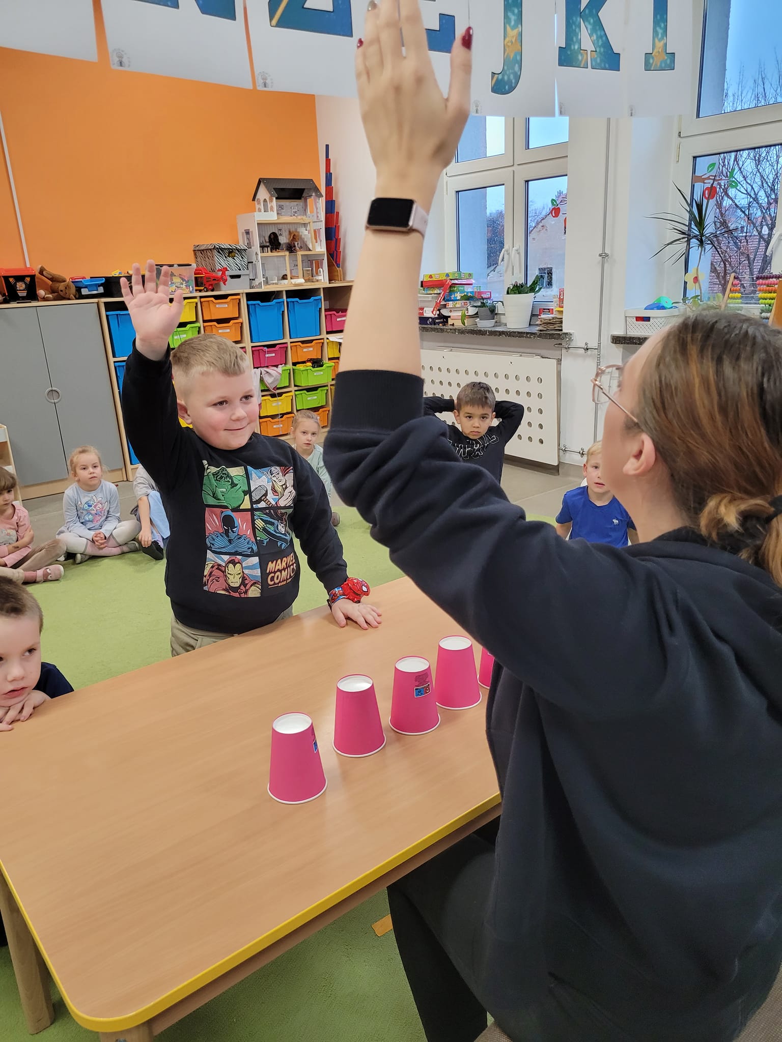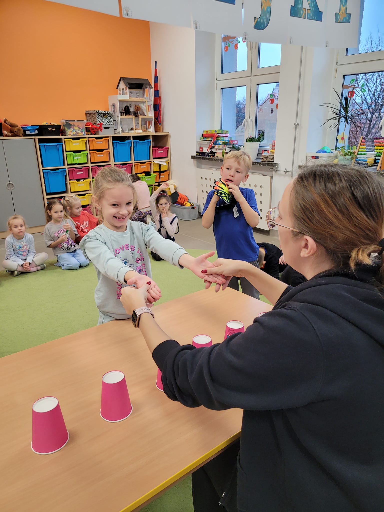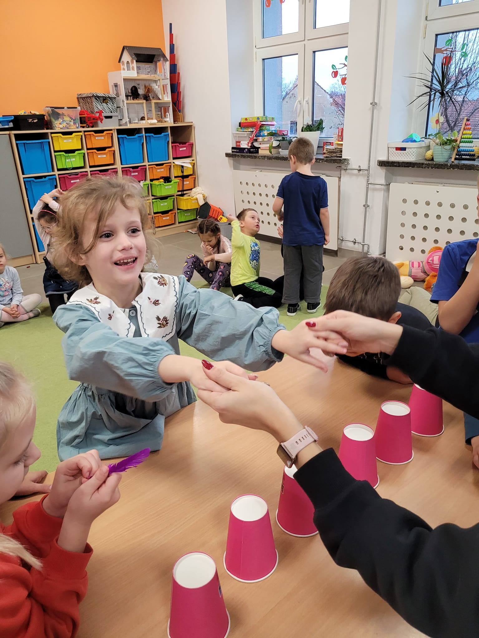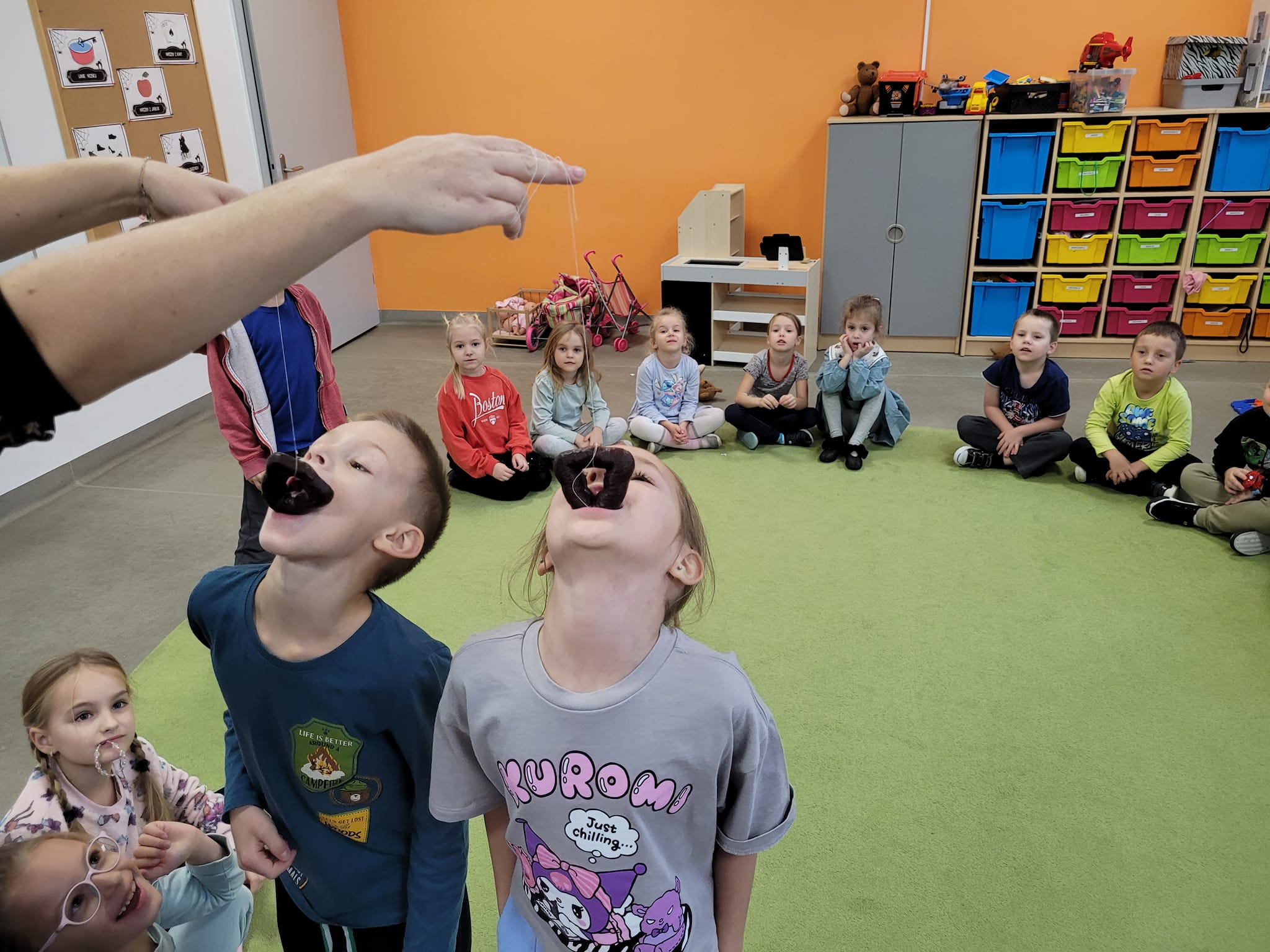 W piątek w naszej grupie świętowaliśmy Andrzejki. Były wróżby, zabawy i dużo śmiechu . Każdy samodzielnie przygotował ciasteczko z wróżbą, w którym krył się atrybut jakiegoś zawodu. Dzieci próbowały także zjeść piernika na sznurku bez użycia rąk.