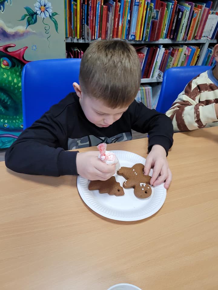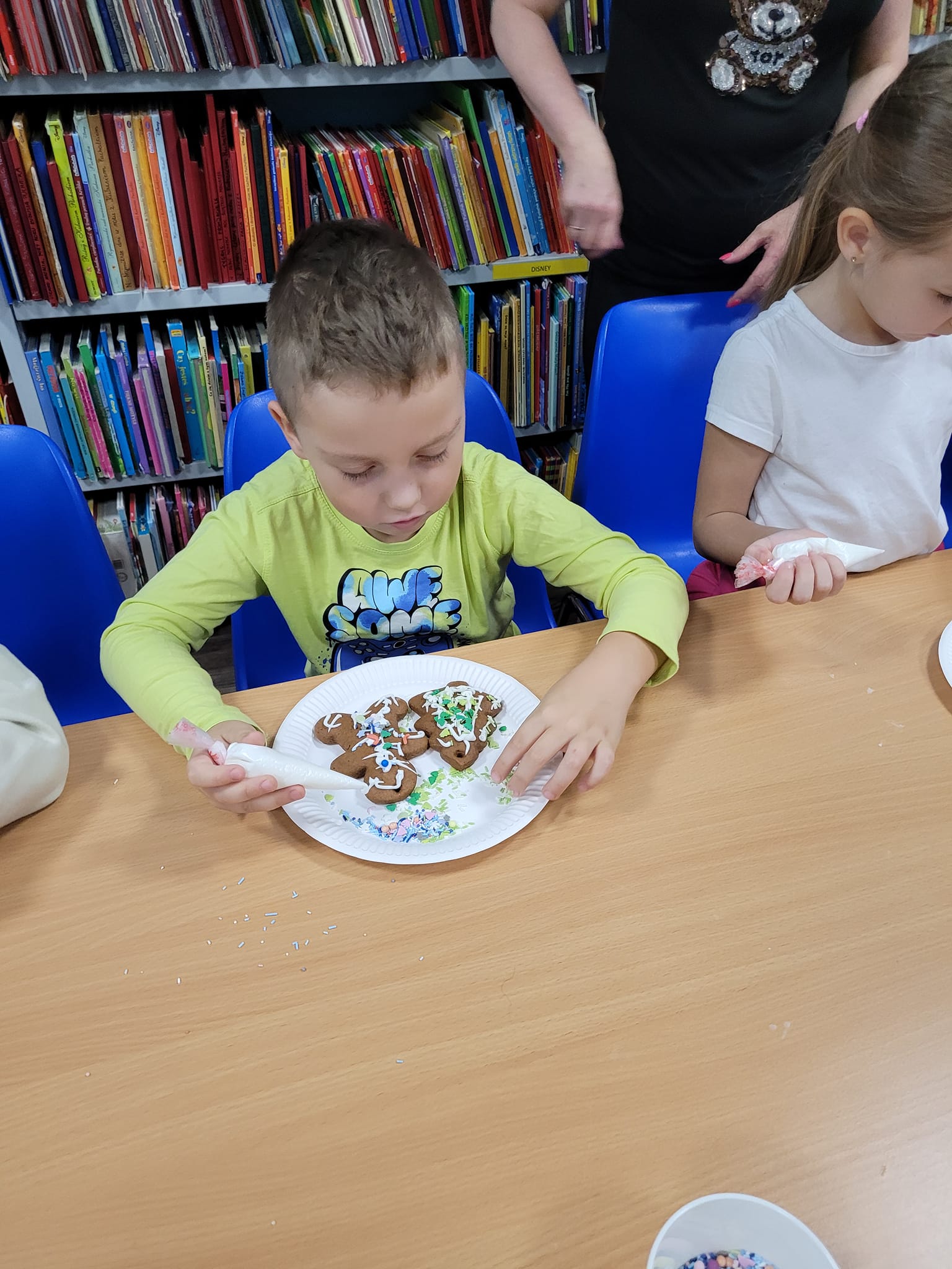 Warsztaty z ozdabiania pierników w Miejsko-Powiatowej Bibliotece Publicznej w Dzierżoniowie były bardzo udane . Dzieci mogły ozdobić pierniczki i wysłuchać książki o Jadzi pętelce.