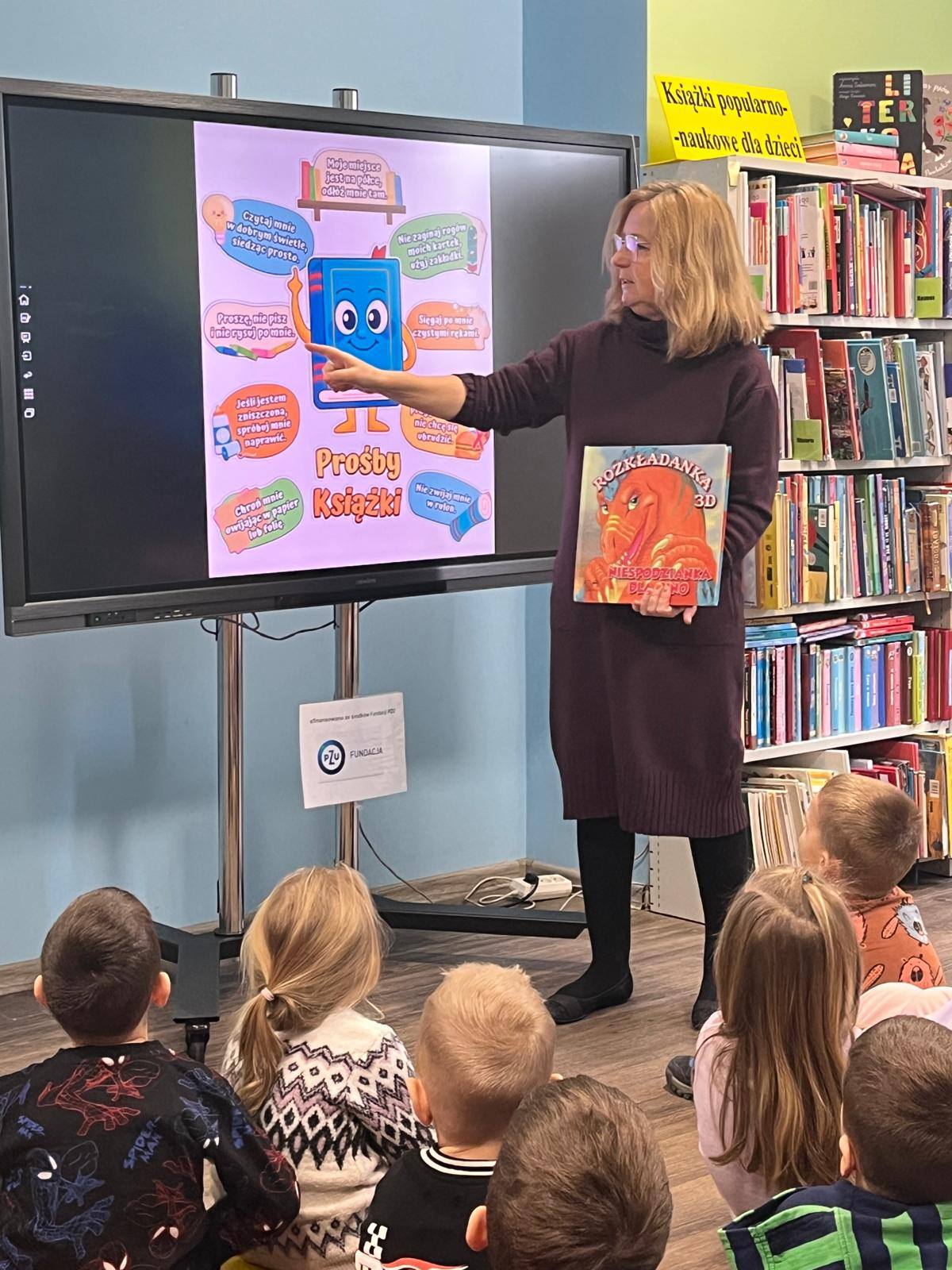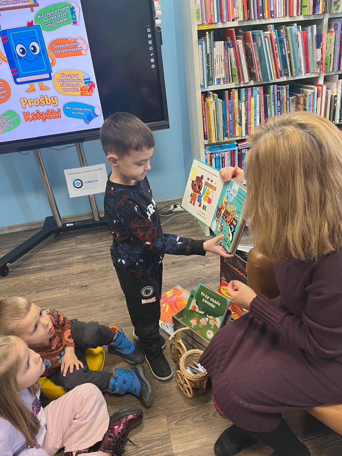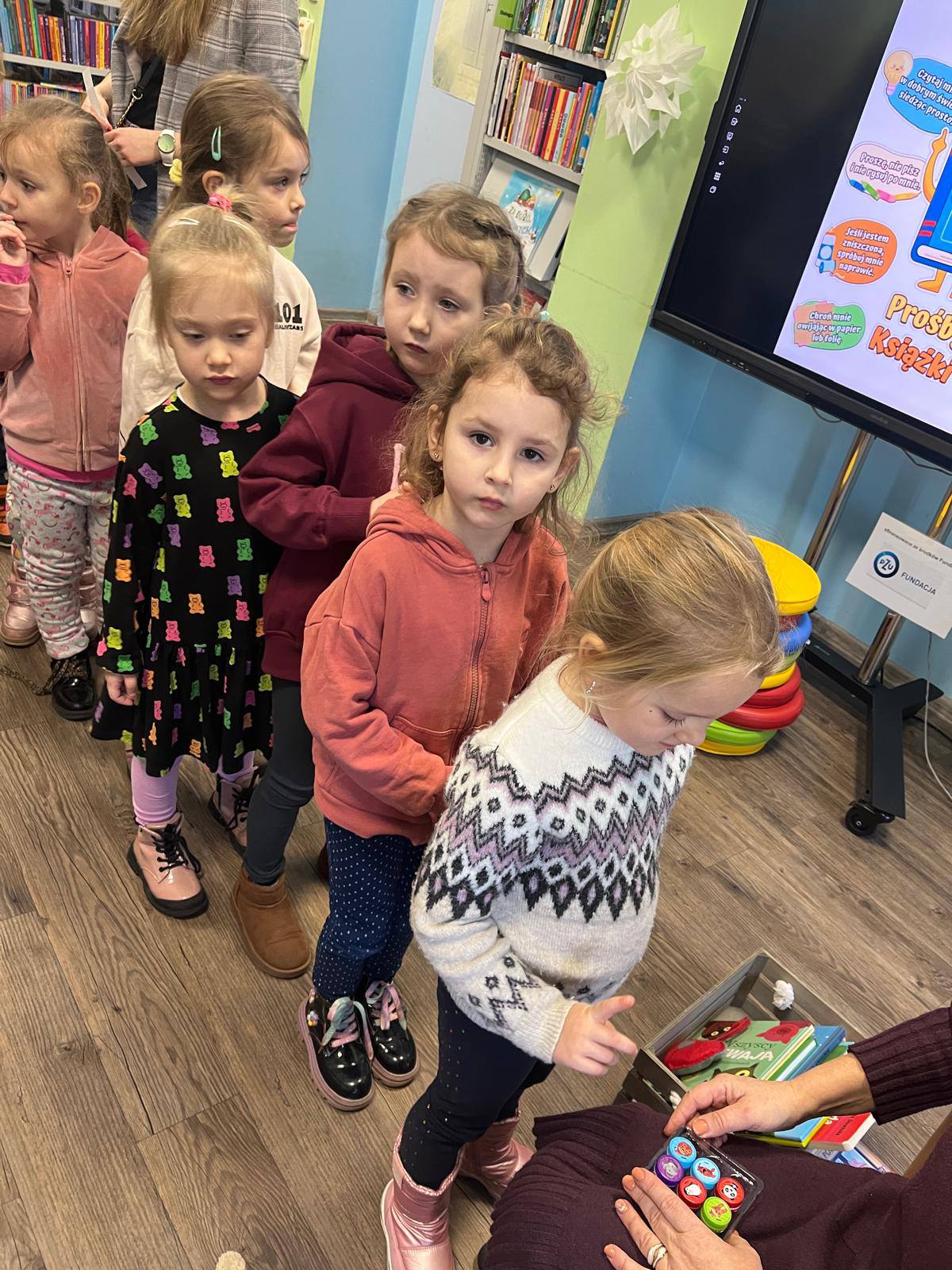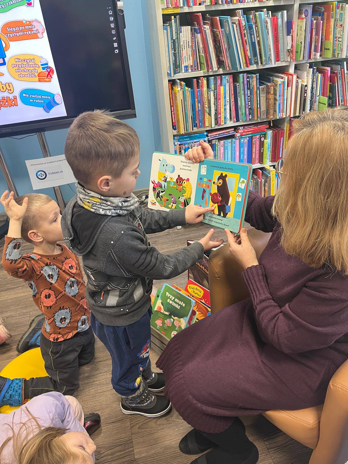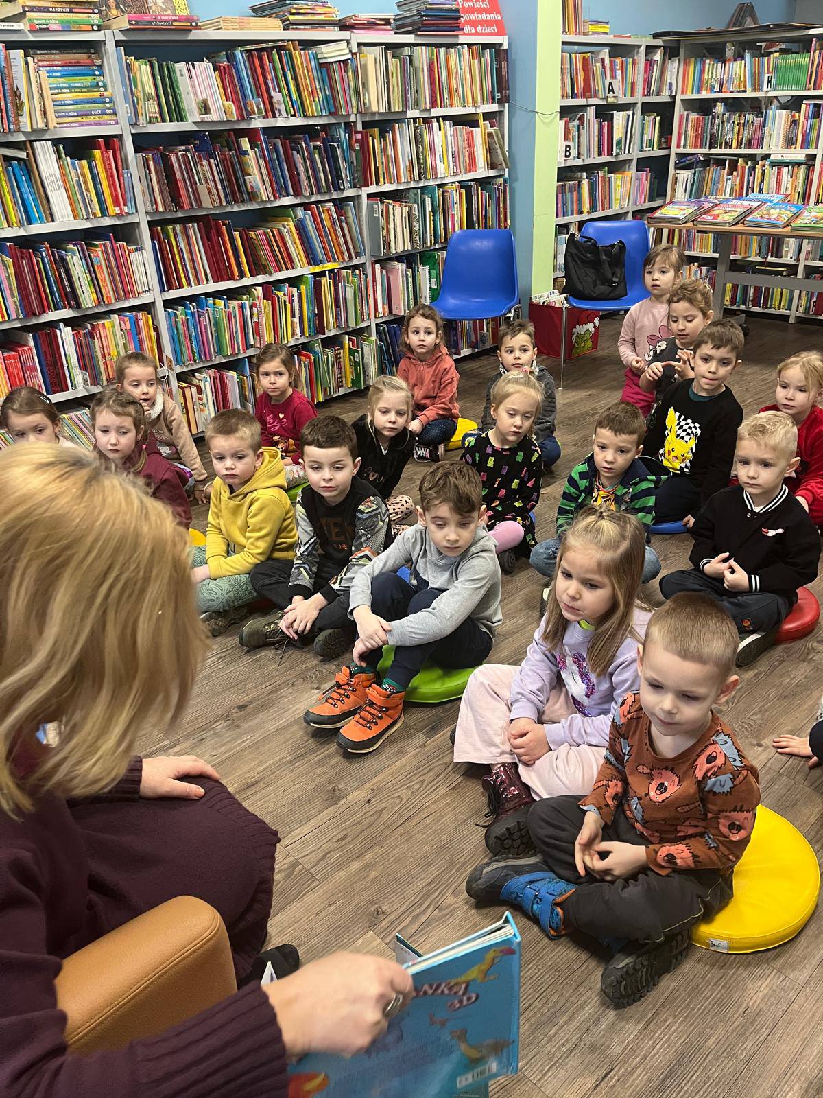Przedszkolaki odwiedziły Bibliotekę Miejską. Uczestnicząc w lekcji bibliotecznej dzieci zapoznały się z zawodem bibliotekarza, dowiedziały się jakie są zasady dbania o książki oraz miały okazję wysłuchać fragmentu bajki, znaleźć odpowiedź na ciekawe zagadki i samodzielnie oglądać książki z dziedziny literatury dziecięcej.