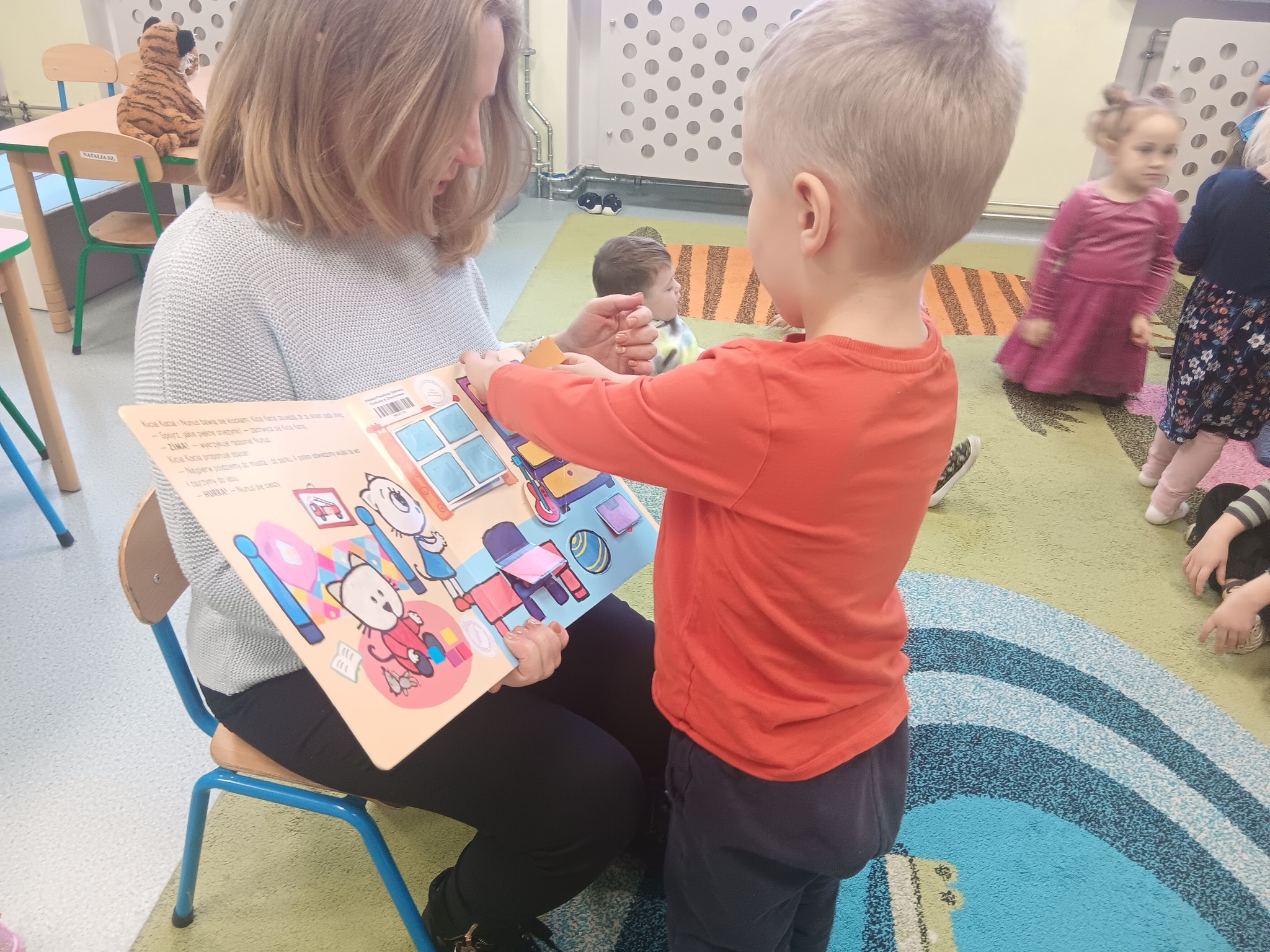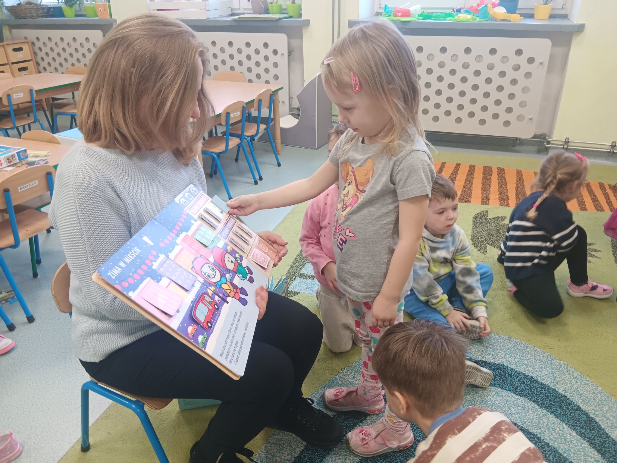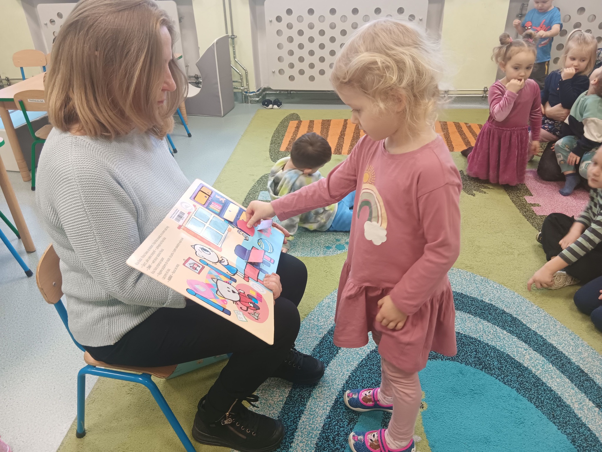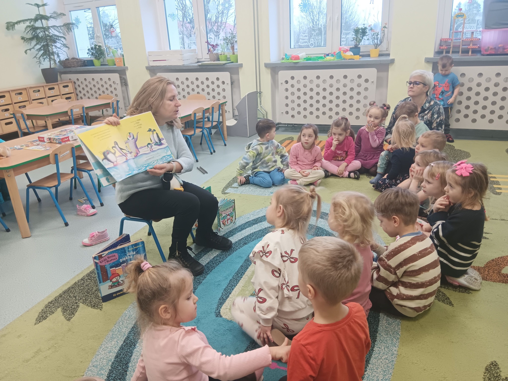 Przedszkolaki odwiedziła Pani z biblioteki miejskiej w Dzierżoniowie. Dzieci poznały historię małego pingwinka :).