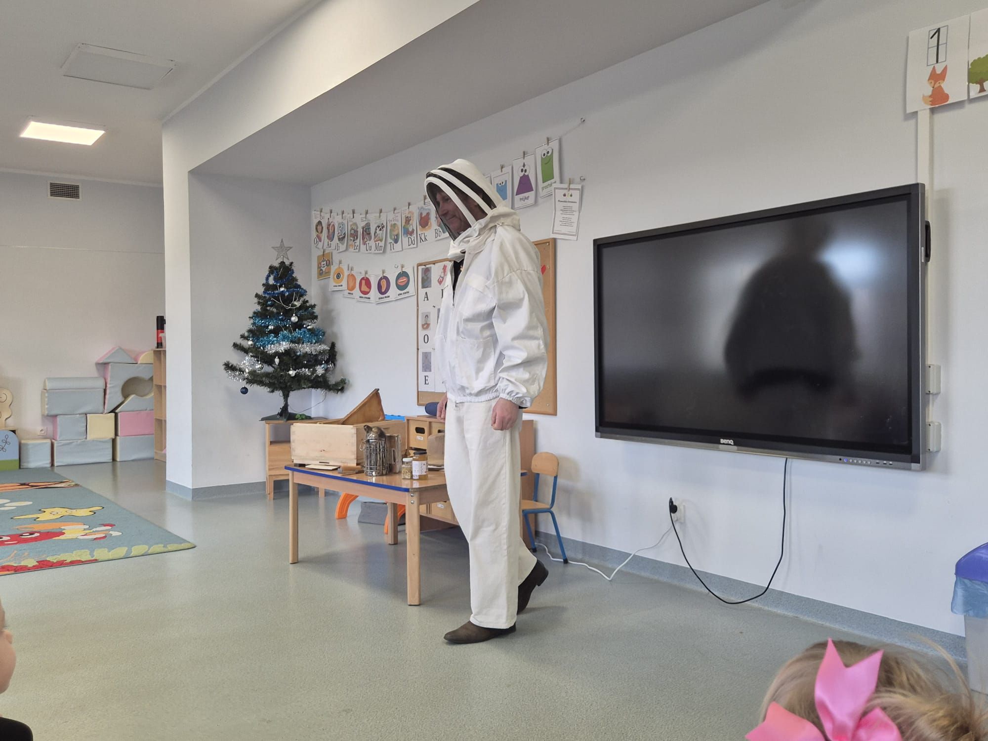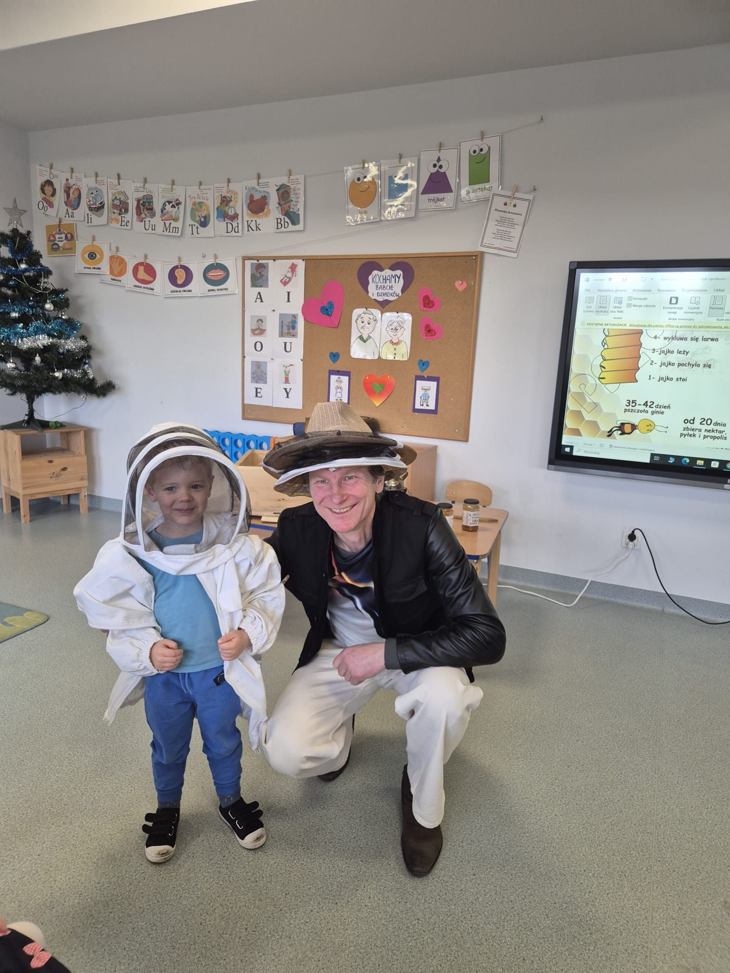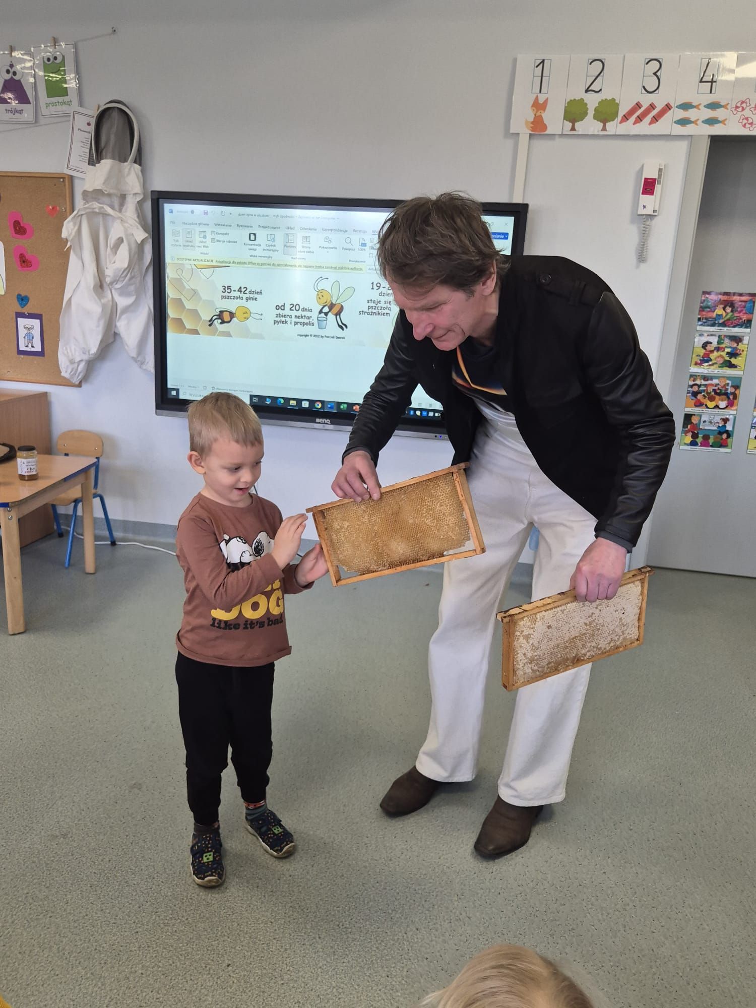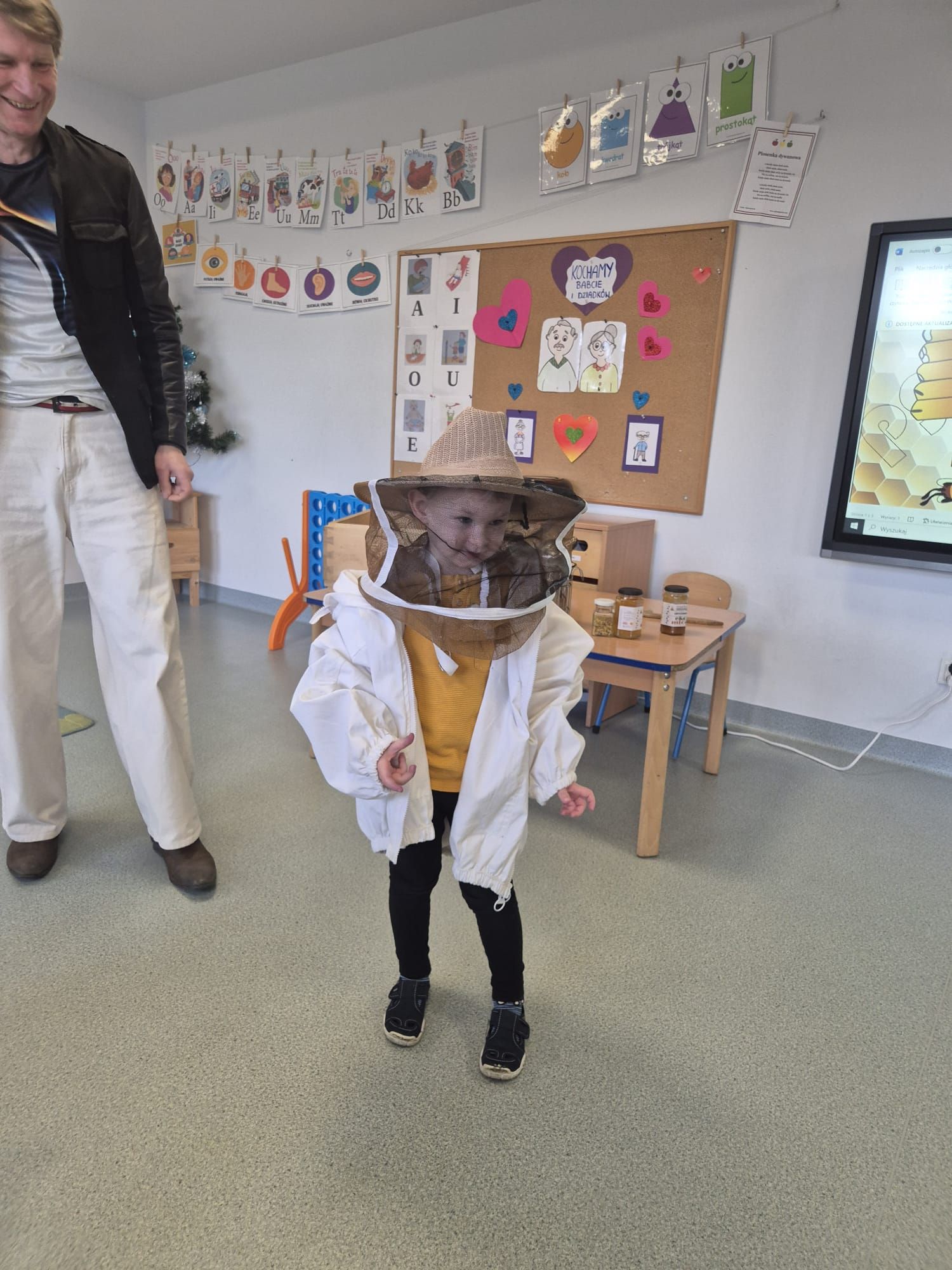 Przedszkolaki odwiedził pszczelarz Pan Jacek. Opowiedział o tym jak powstaje miód, jak zadbać o swoje bezpieczeństwo pozyskując miód oraz jak rozwija się pszczoła:) Dzieci mogły również spróbować prawdziwego miodu.