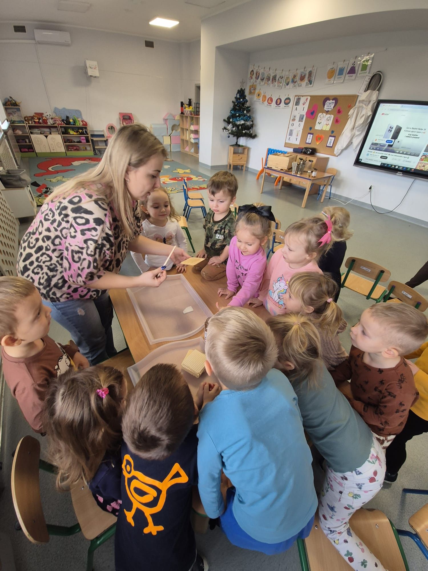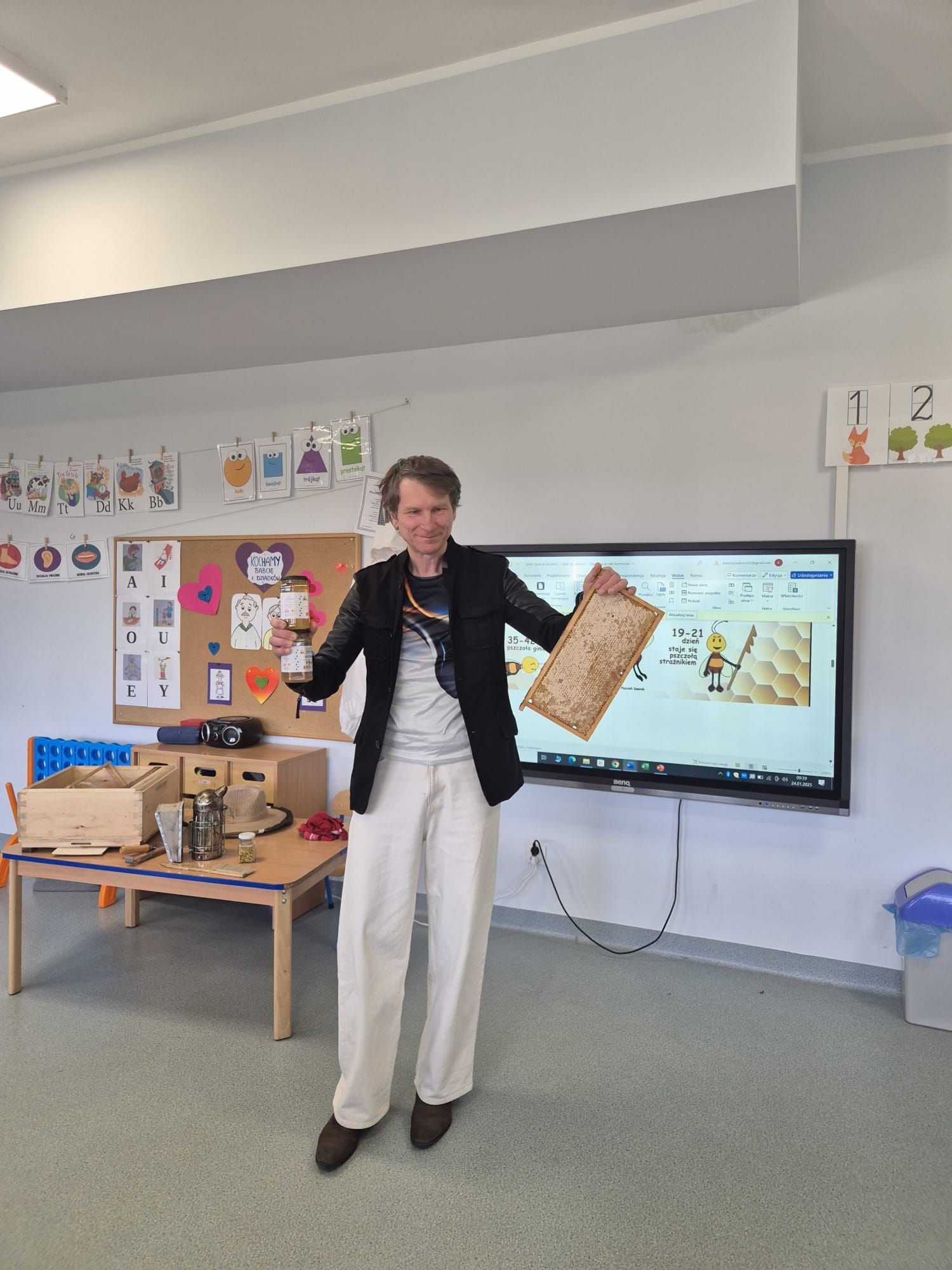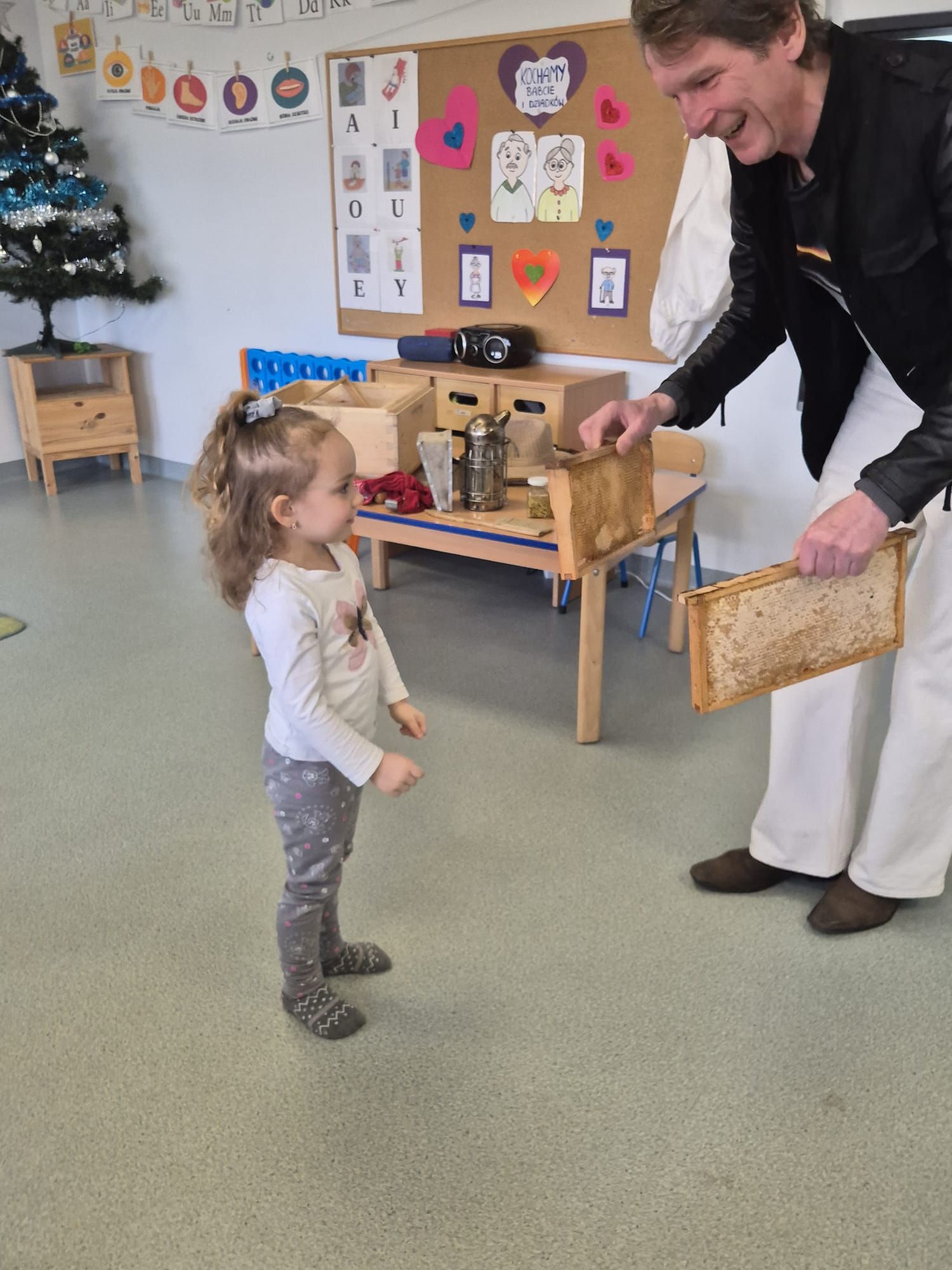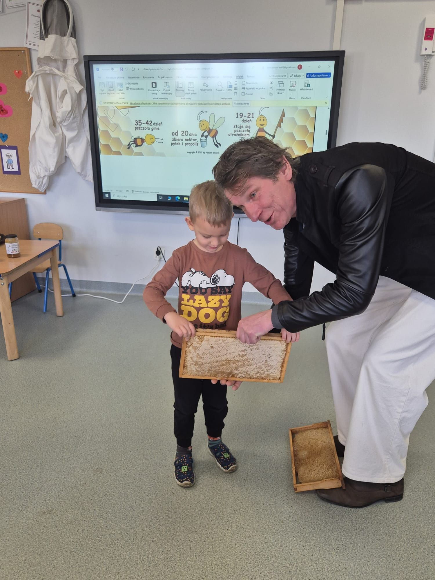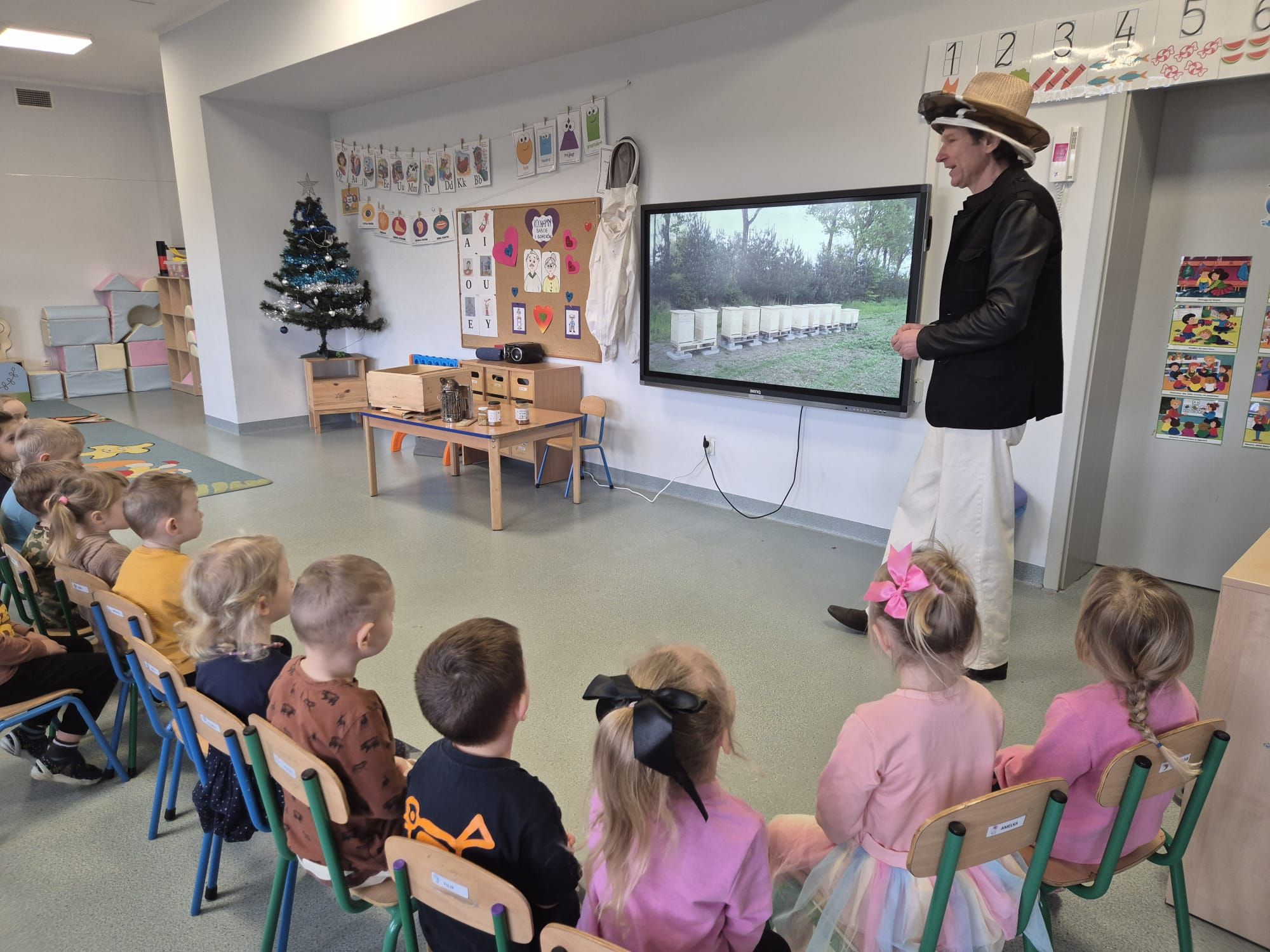 Przedszkolaki odwiedził pszczelarz Pan Jacek. Opowiedział o tym jak powstaje miód, jak zadbać o swoje bezpieczeństwo pozyskując miód oraz jak rozwija się pszczoła:) Dzieci mogły również spróbować prawdziwego miodu.