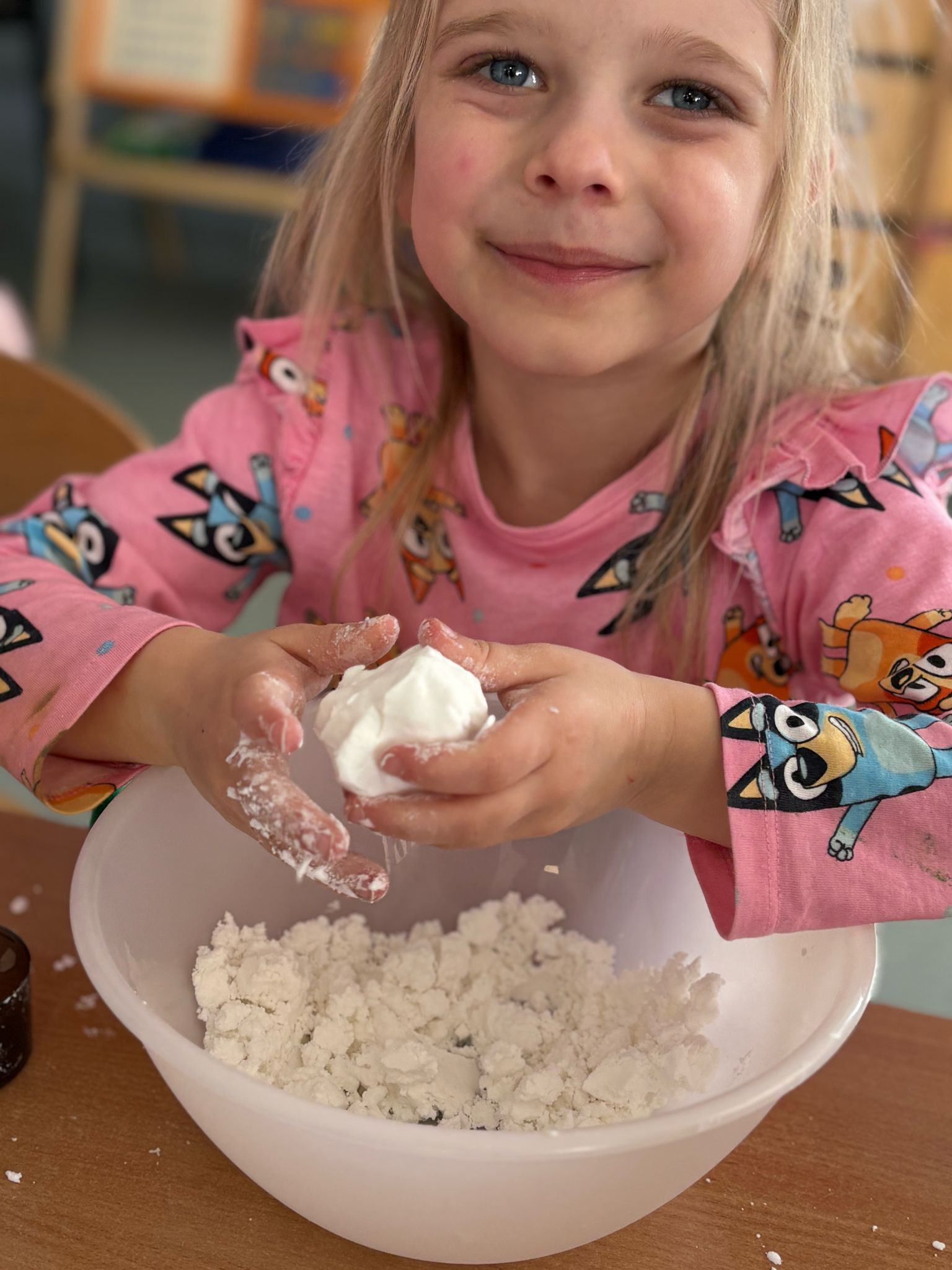 Zajęcia sensoryczne pt. "Tworzenie piankoliny".