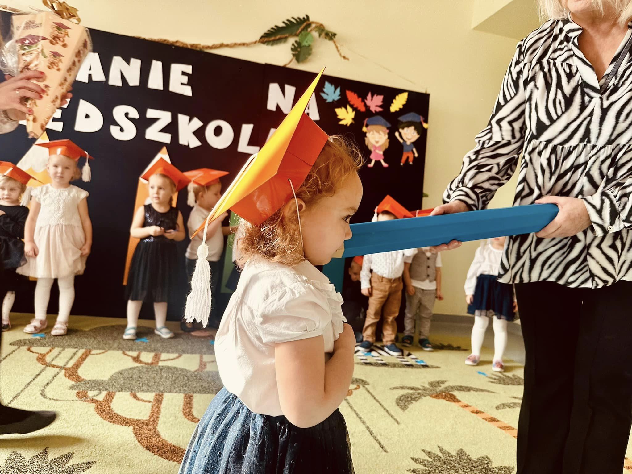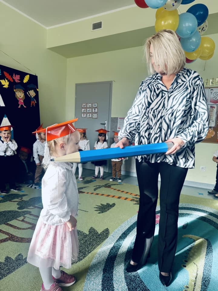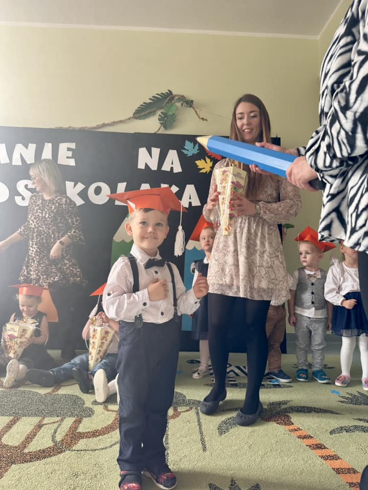 Na pamiątkę tego ważnego wydarzenia każdy przedszkolak otrzymał dyplom pasowania, książeczkę oraz rożek obfitości.