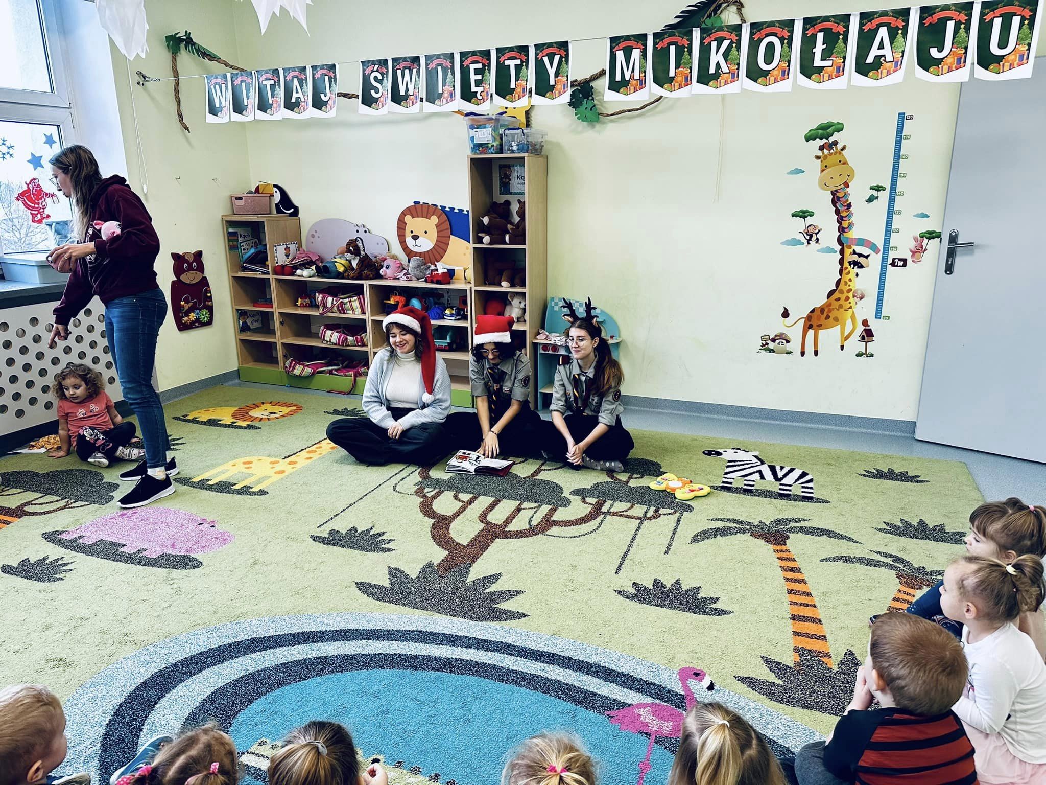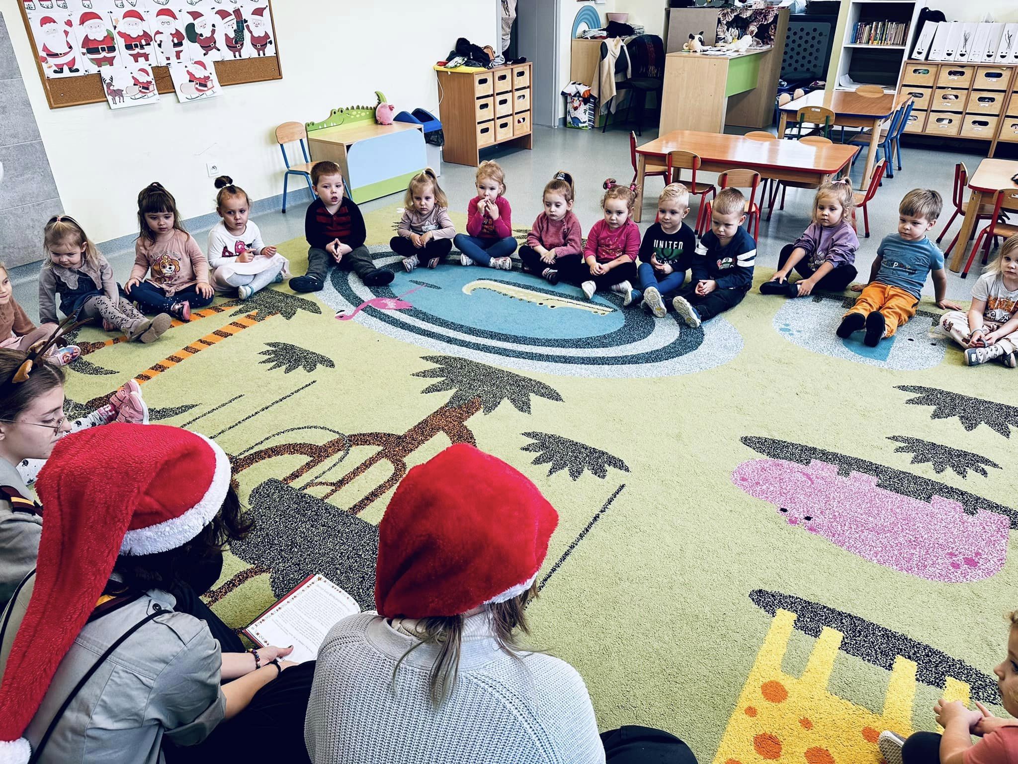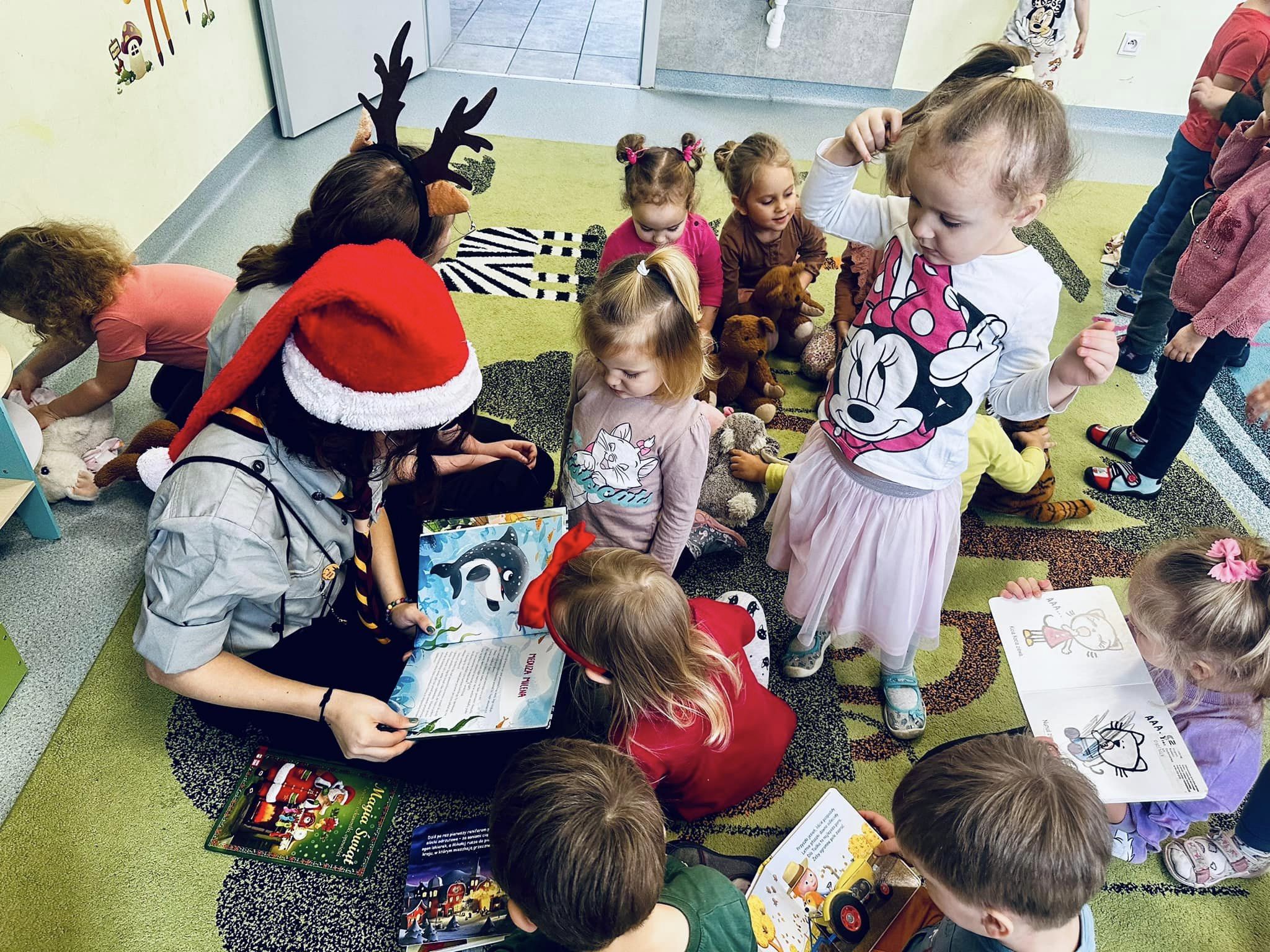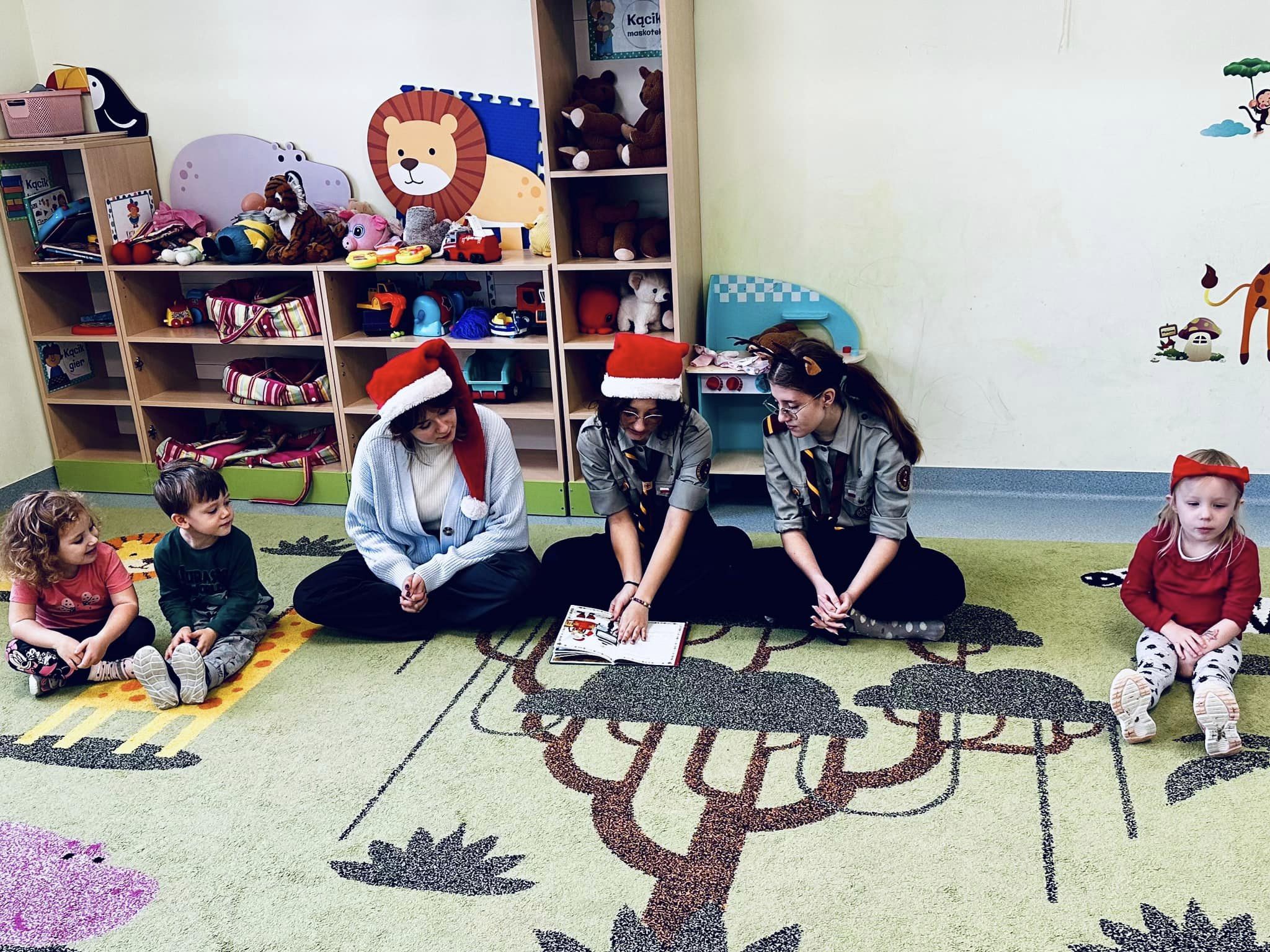Dziewczęta w ramach wolontariatu czytają bajki dla najmłodszych. Dzieci z grupy Lwiątek były bardzo zainteresowane gośćmi, oraz wysłuchały bajki o św. Mikołaju. Dziękujemy oraz zapraszamy ponownie