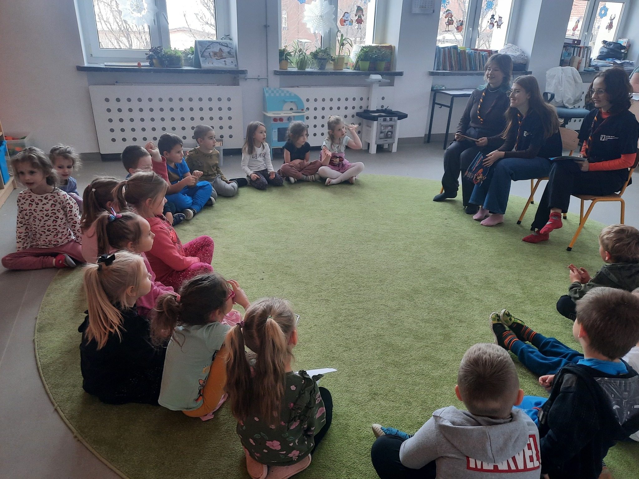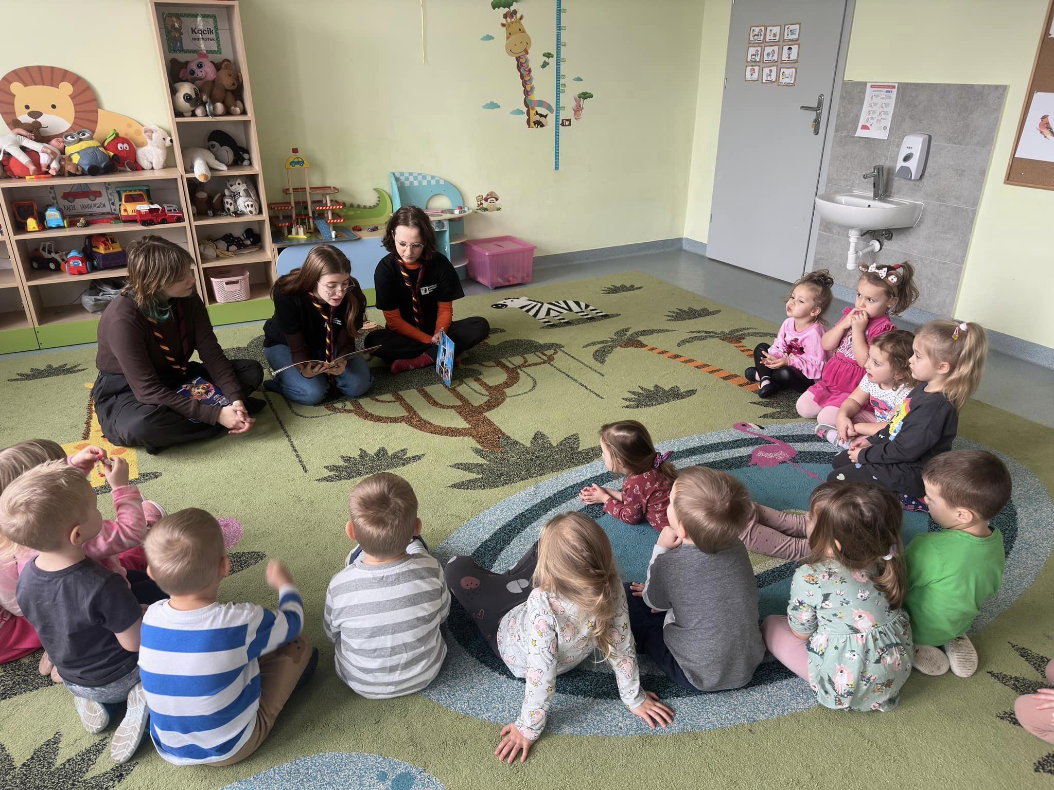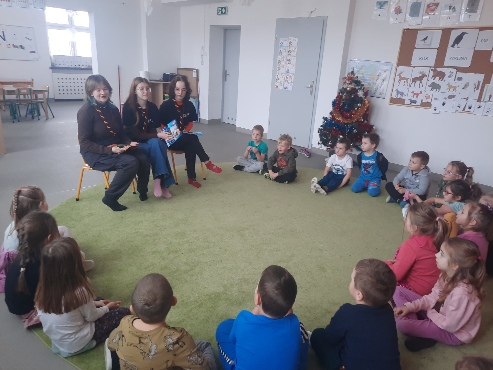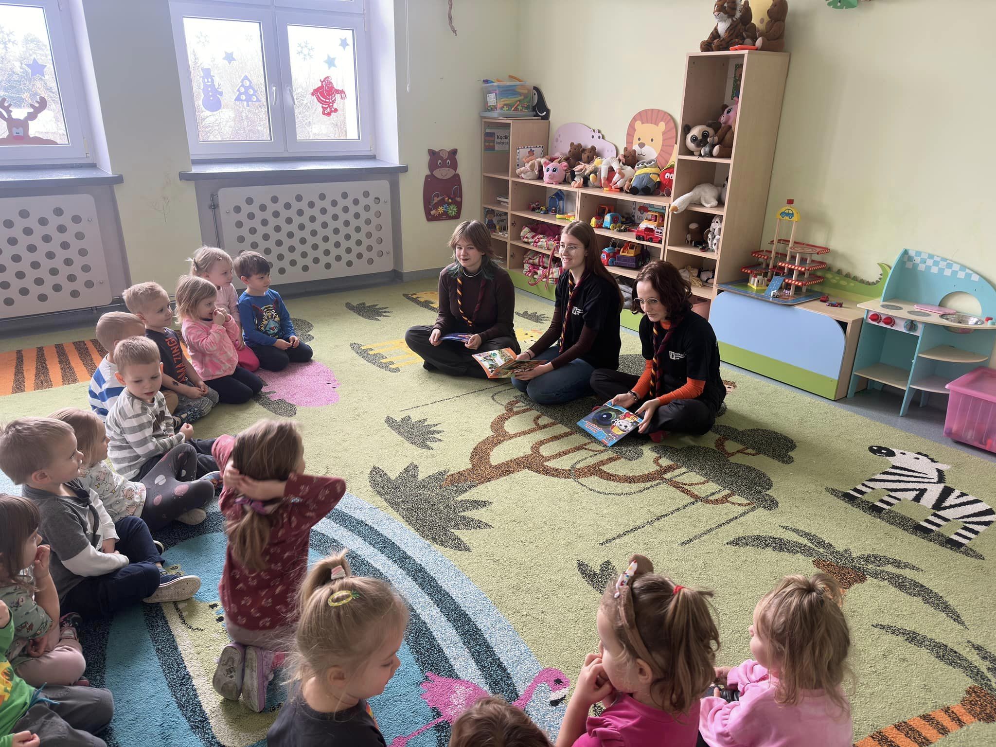 Dnia 11.01.2024 roku przedszkolaki odwiedziły harcerki z 27 DW "Burza" aby przeczytać dzieciom bajki.