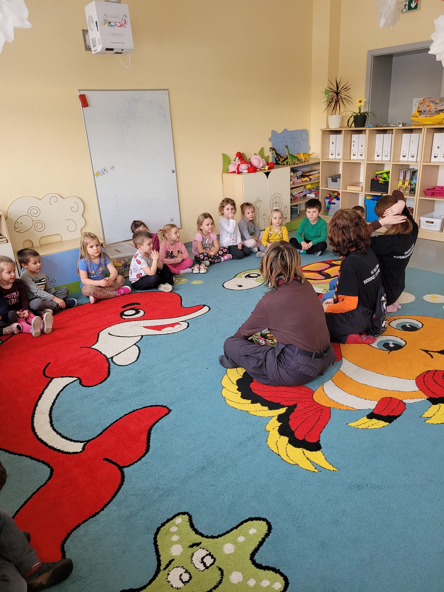 Dzieci z zaciekawieniem słuchały przygód Psiego Patrolu. Bardzo dziękujemy za odwiedzimy ![]()