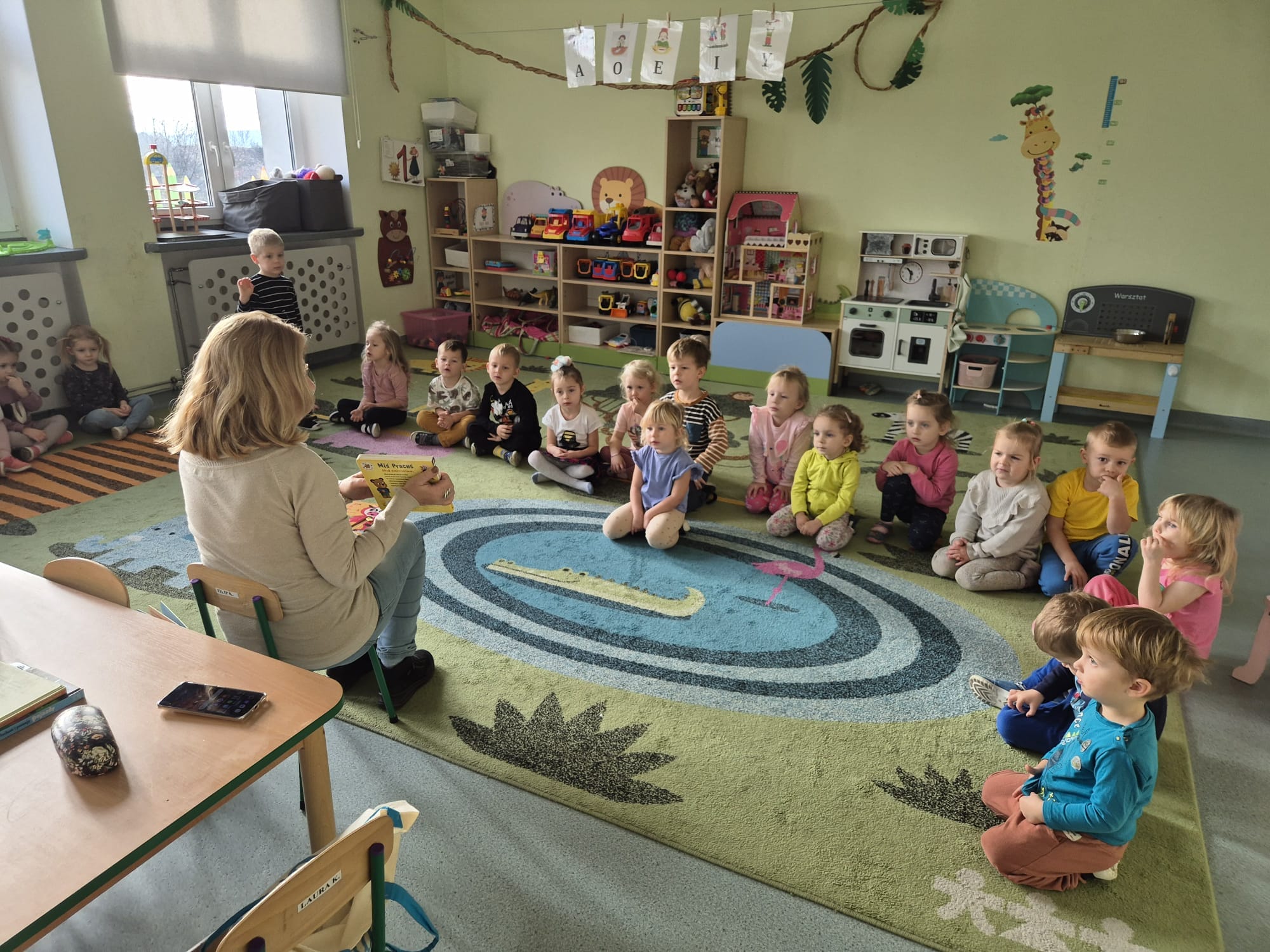 W czwartek odwiedziła gr.Lwiątek Pani z biblioteki. Słuchaliśmy bajeczek o Kici Koci.