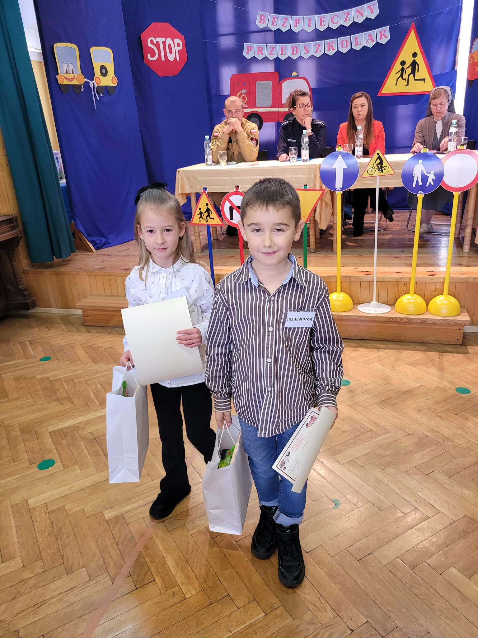 Dzisiaj Helenka i Olek wzięli udział w konkursie "Bezpieczny Przedszkolak" organizowanym przez Niepubliczne Przedszkole Sióstr Selezjanek w Dzierżoniowie.