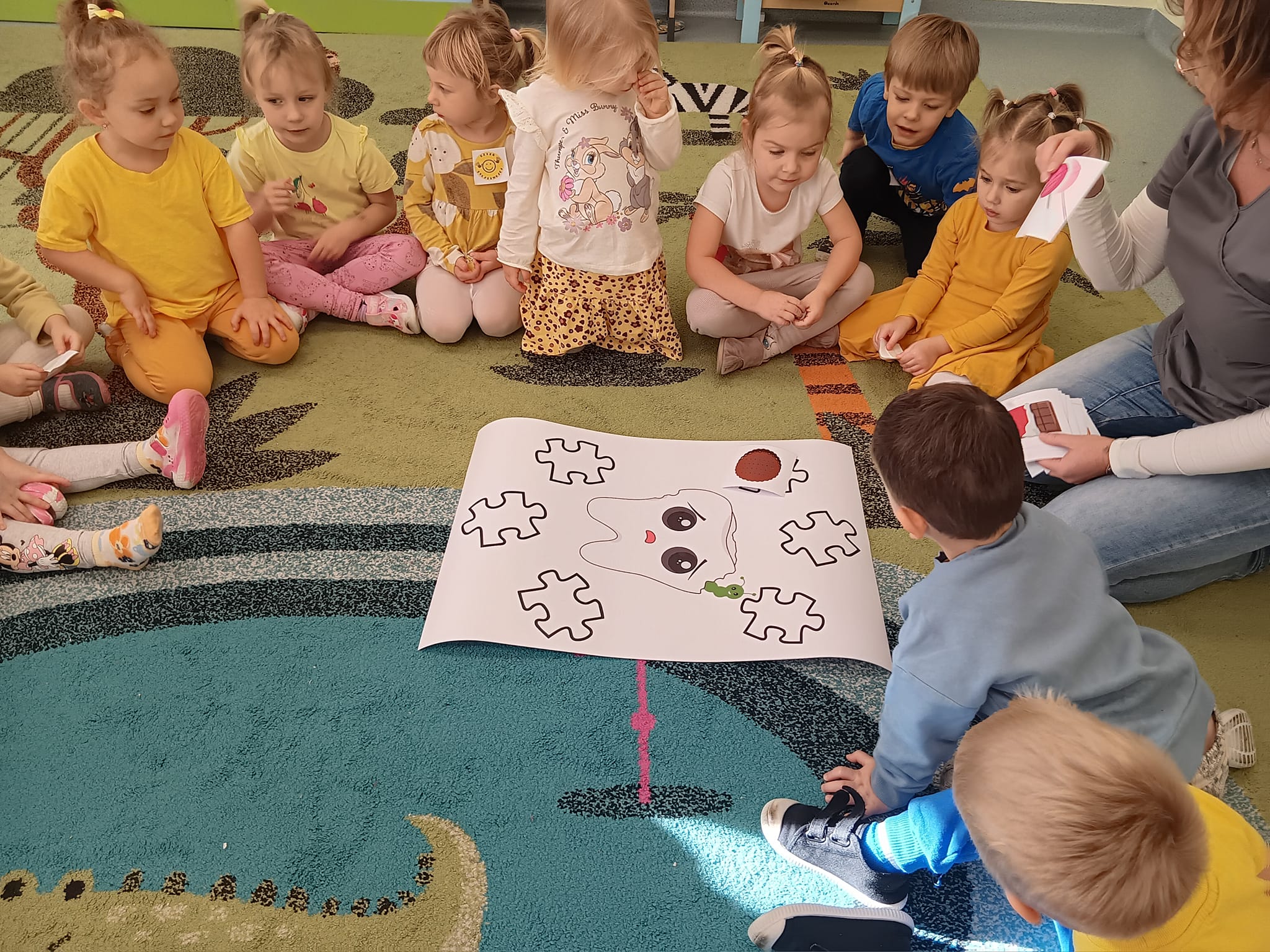 Dziś gościliśmy u siebie Panią higienistkę stomatologiczną, która opowiedziała dzieciom jak dbać o uzębienie. Były to bardzo ciekawe warsztaty. Dzieci wykazały się dużą aktywnością, wzbogaciły swoją wiedzę o bardzo ważne informacje.