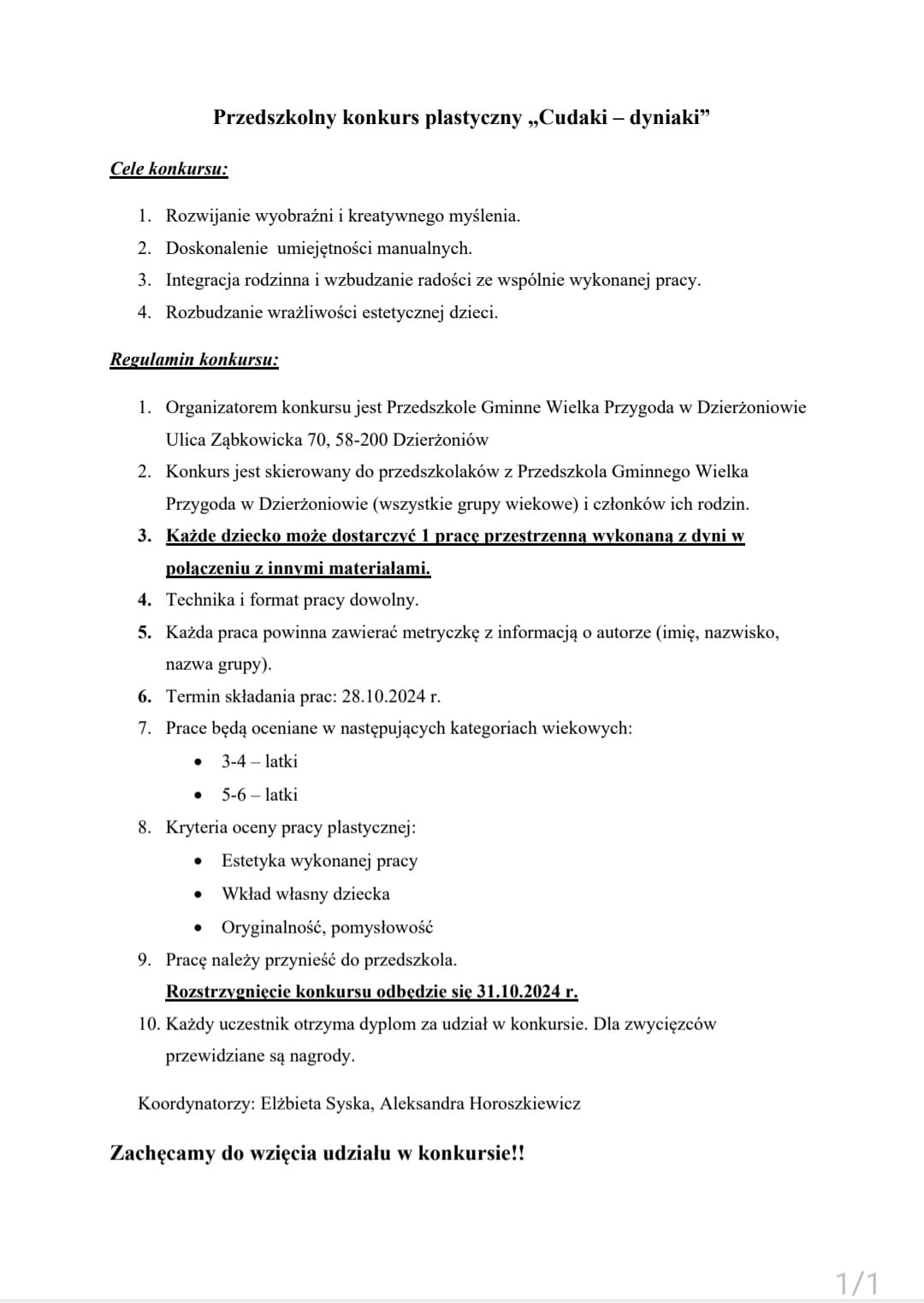 Zapraszamy do wzięcia udziału w przedszkolnym konkursie "Cudaki-dyniaki"