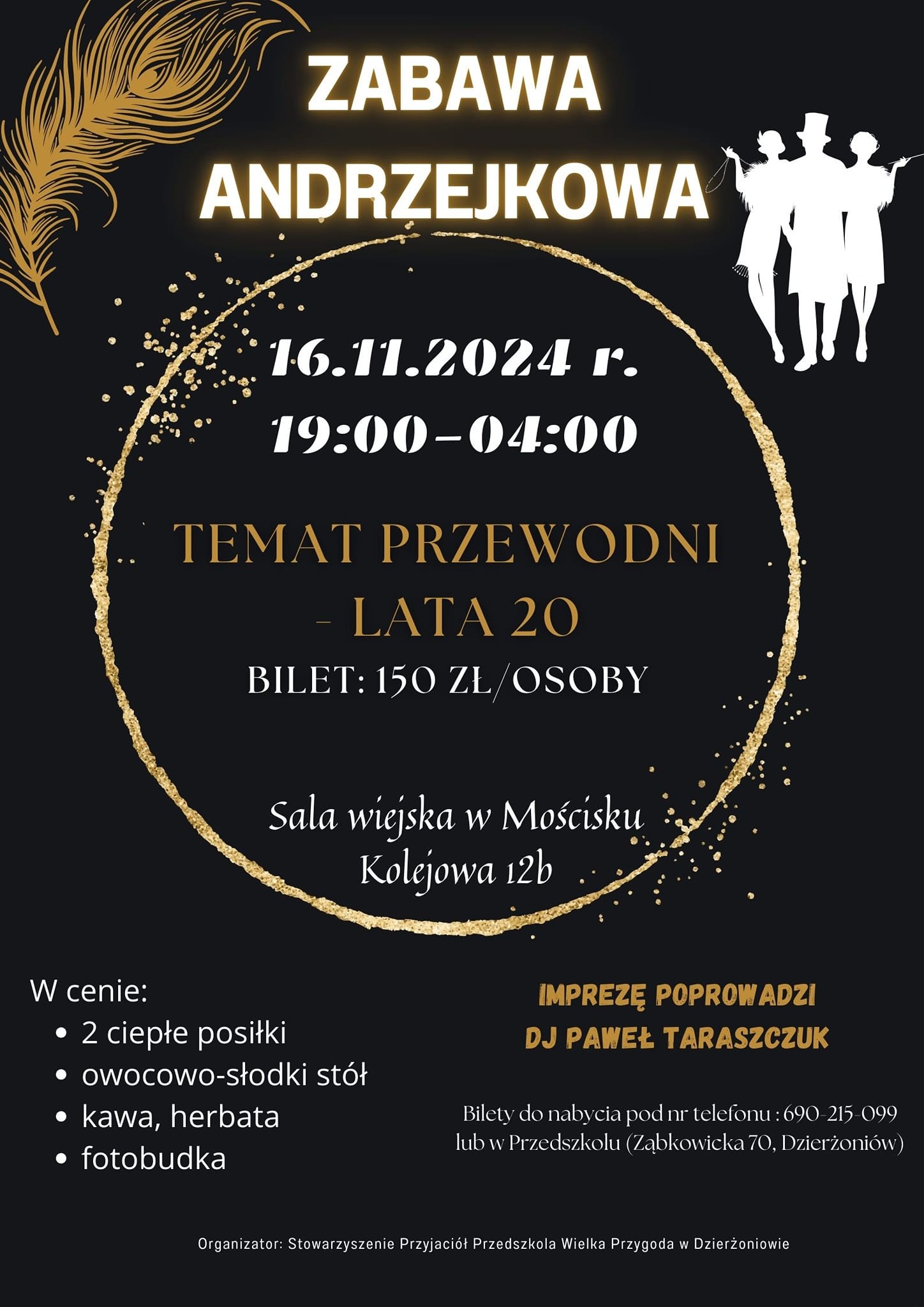 Stowarzyszenie Przyjaciół Przedszkola WIELKA PRZYGODA w Dzierżoniowie organizuje zabawę Andrzejkową 16.11.2024 r.