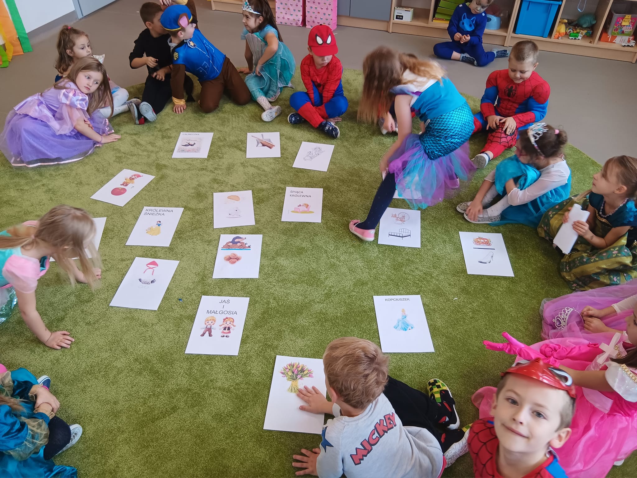 W tym dniu były zabawy wymagające wykazania się znajomością treści bajek, tych znanych i mniej znanych, m.in. dzieci rozwiązywały zagadki, rozpoznawały bajkę po rekwizycie oraz po przeczytaniu fragmentu książki. Dzieci wspólnie odgadywały piosenki z bajek, uczestniczyły w zabawach ruchowych przy muzyce oraz w pokazie bajkowych strojów.